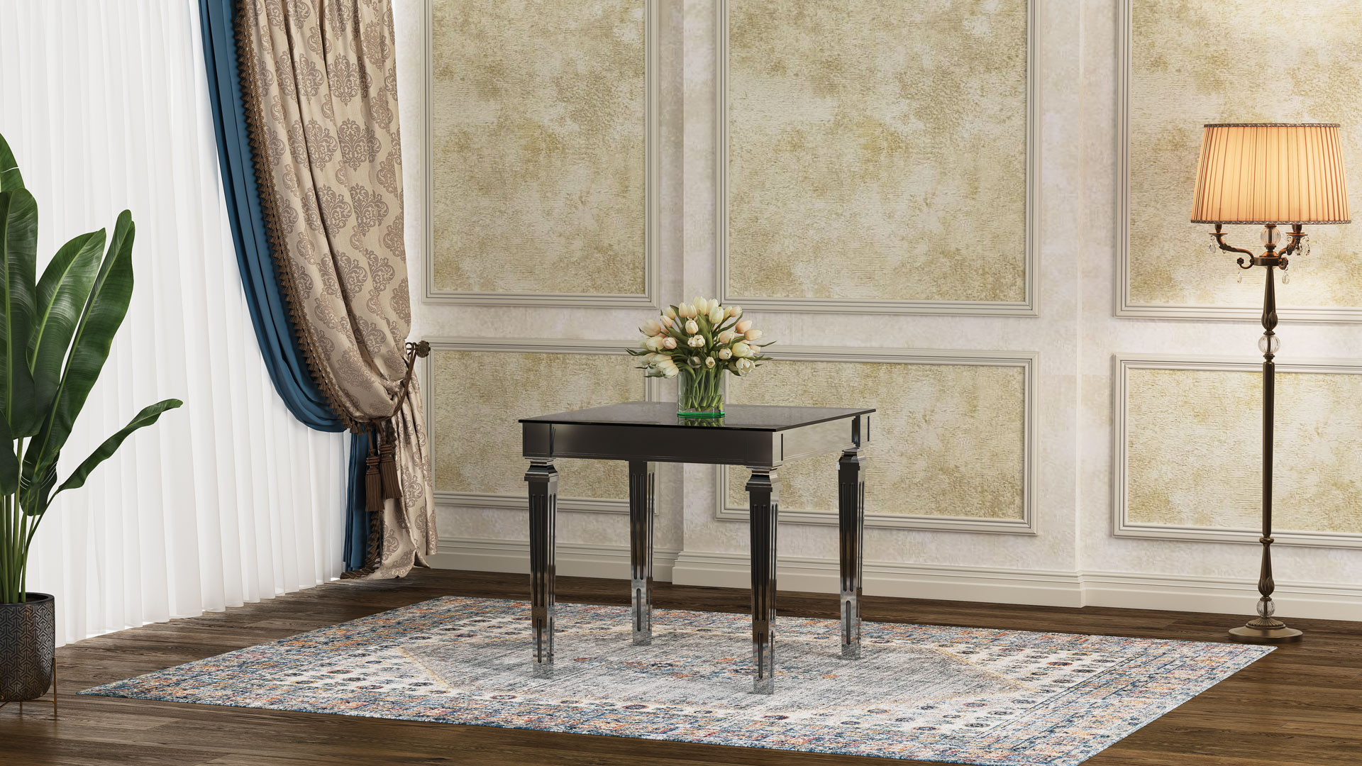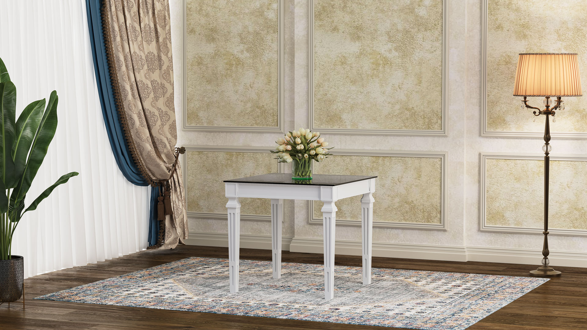 طاولة بوليمر لوئیز تتميز بالبساطة التي تمنحها قوة على الانسجام مع أي ديكور. أرجلها المزخرفة بخفة تكسر الرتابة دون مبالغة، وتمنحها لمسة أنيقة.