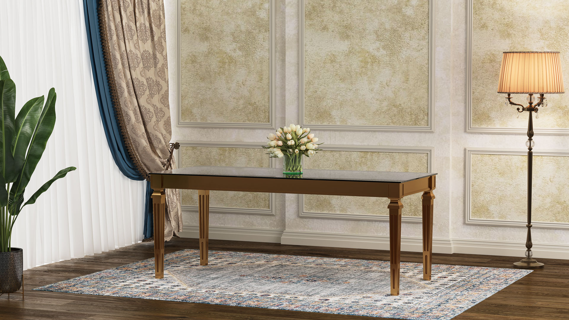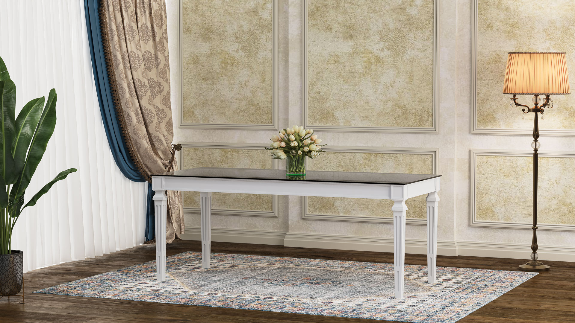 طاولة لوئیز بوليمرية مع زجاج مقوى