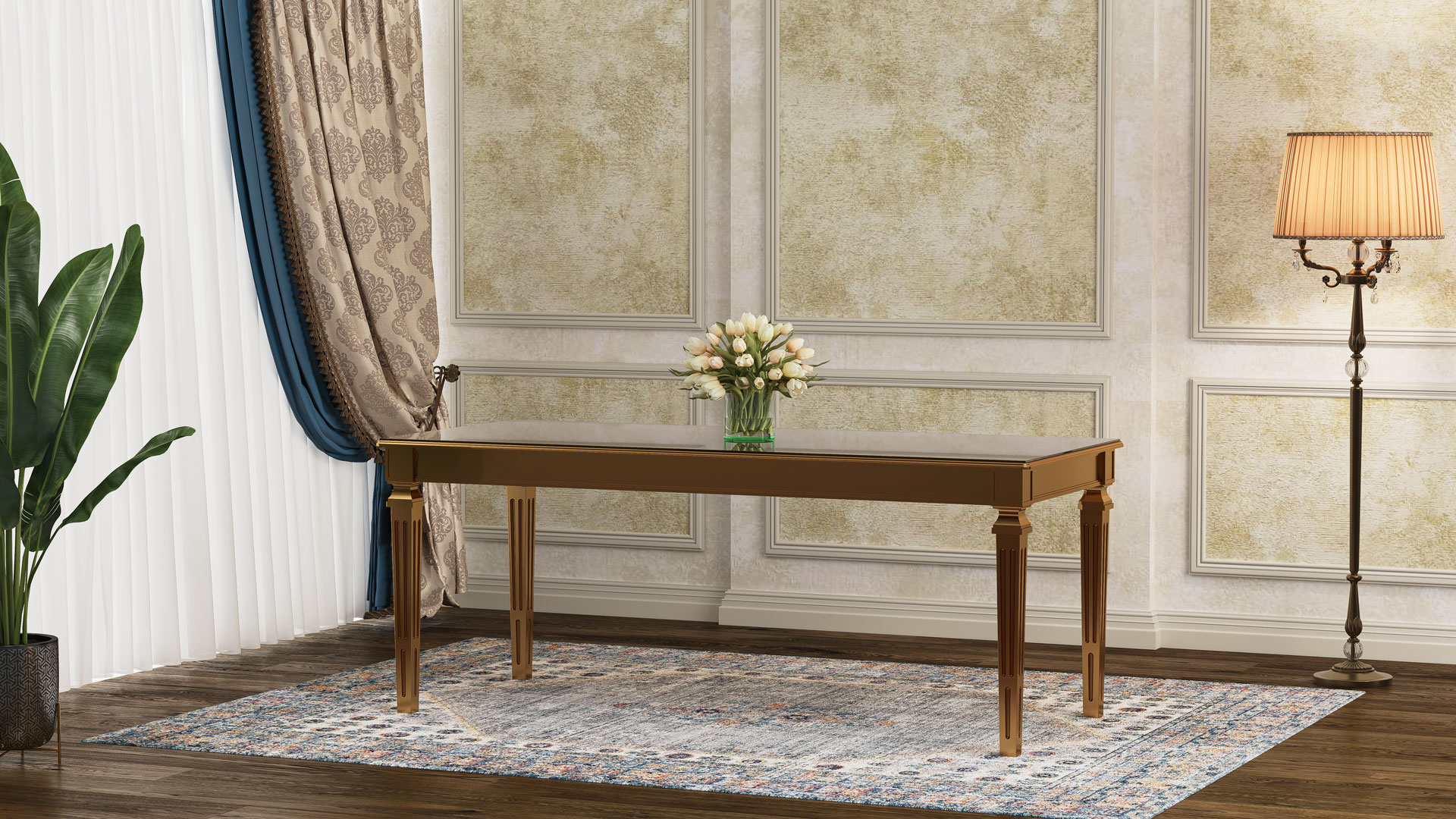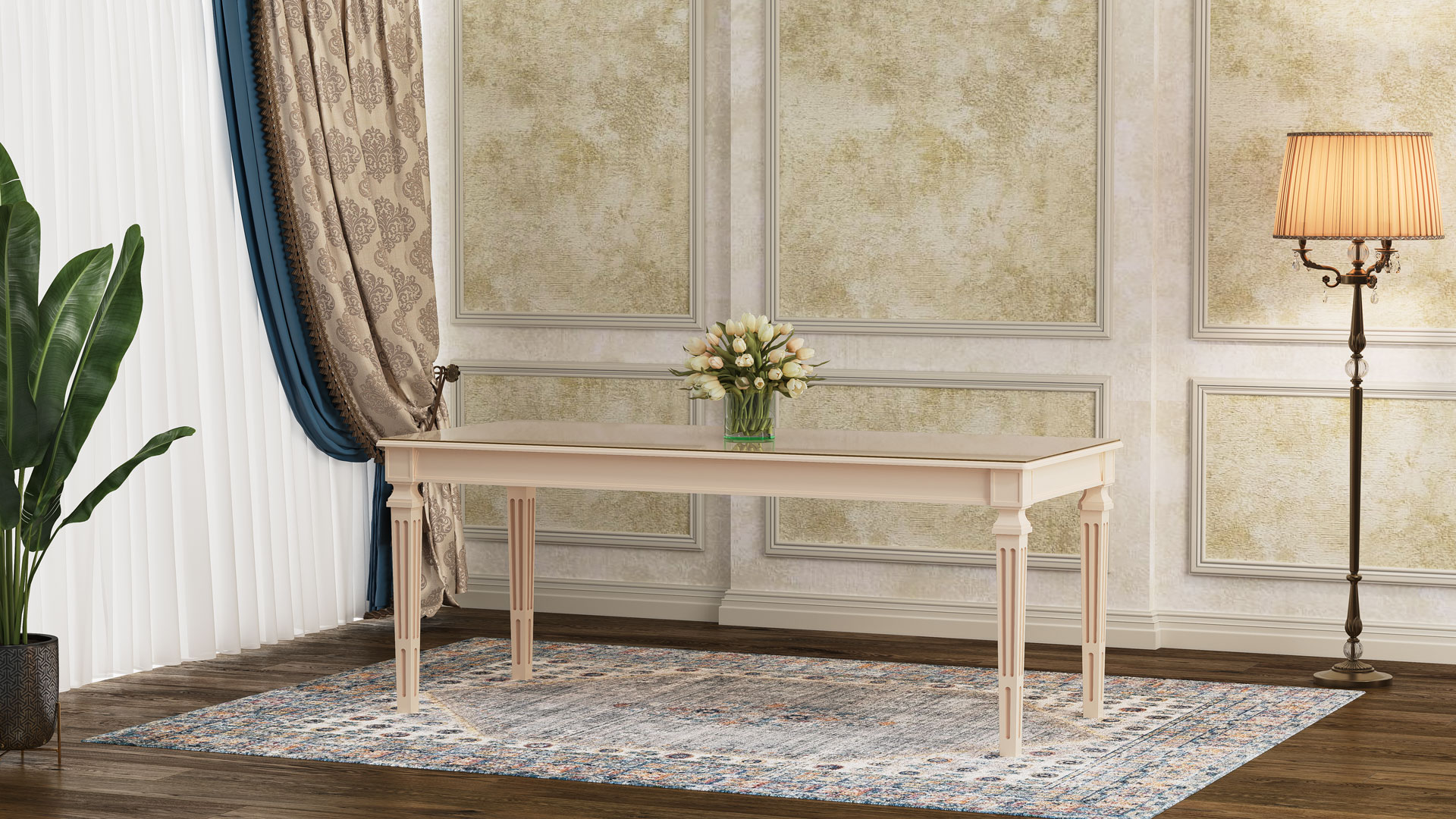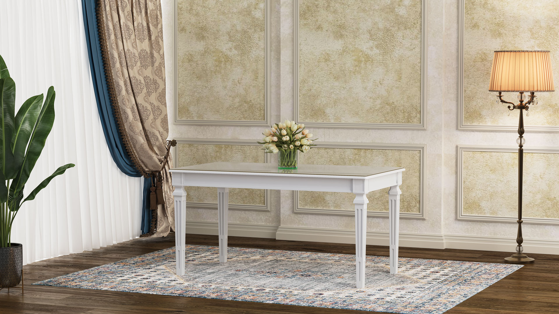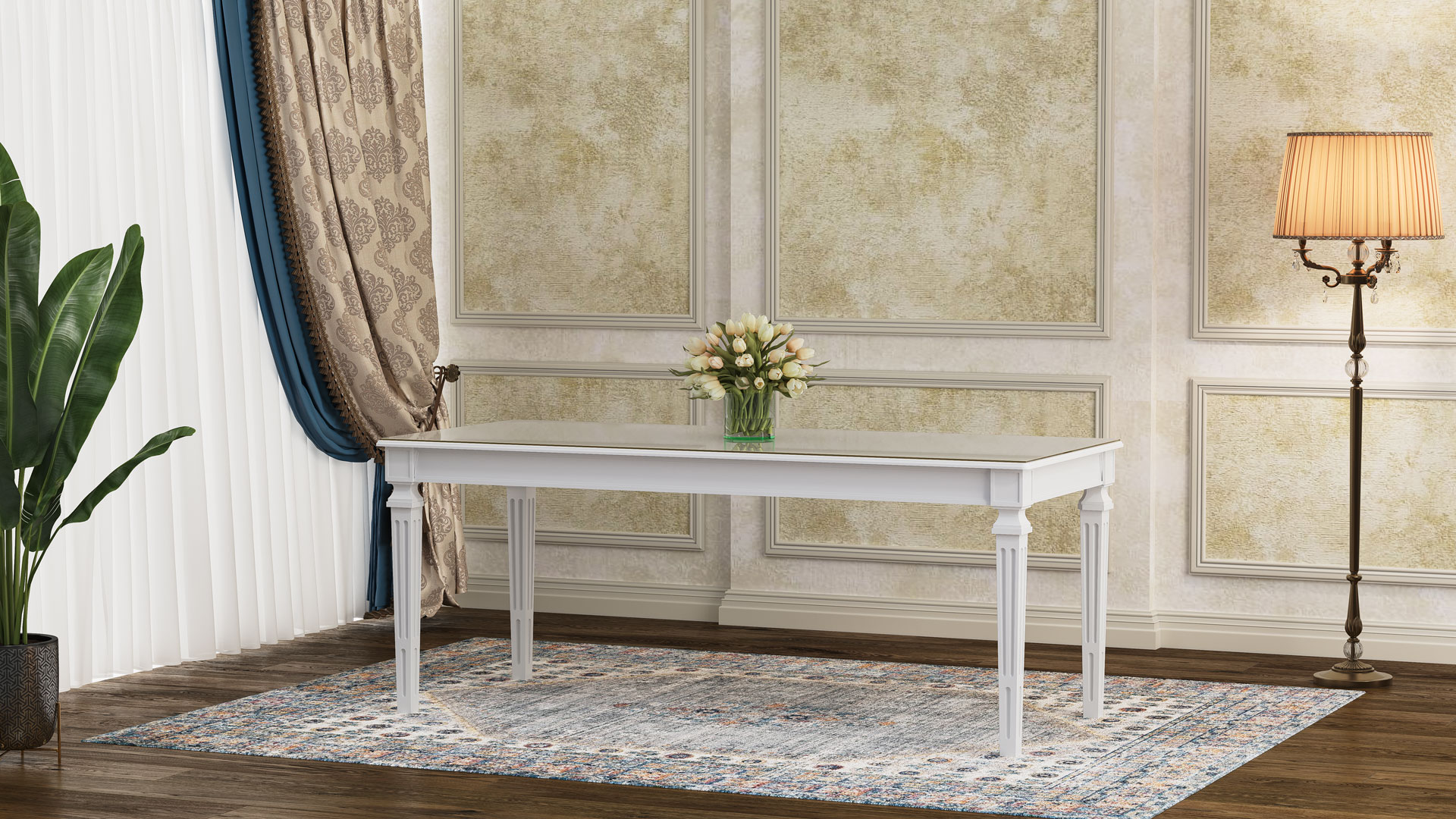 طاولة لوئیز بوليمرية مع سطح MDF وزجاج مقوى