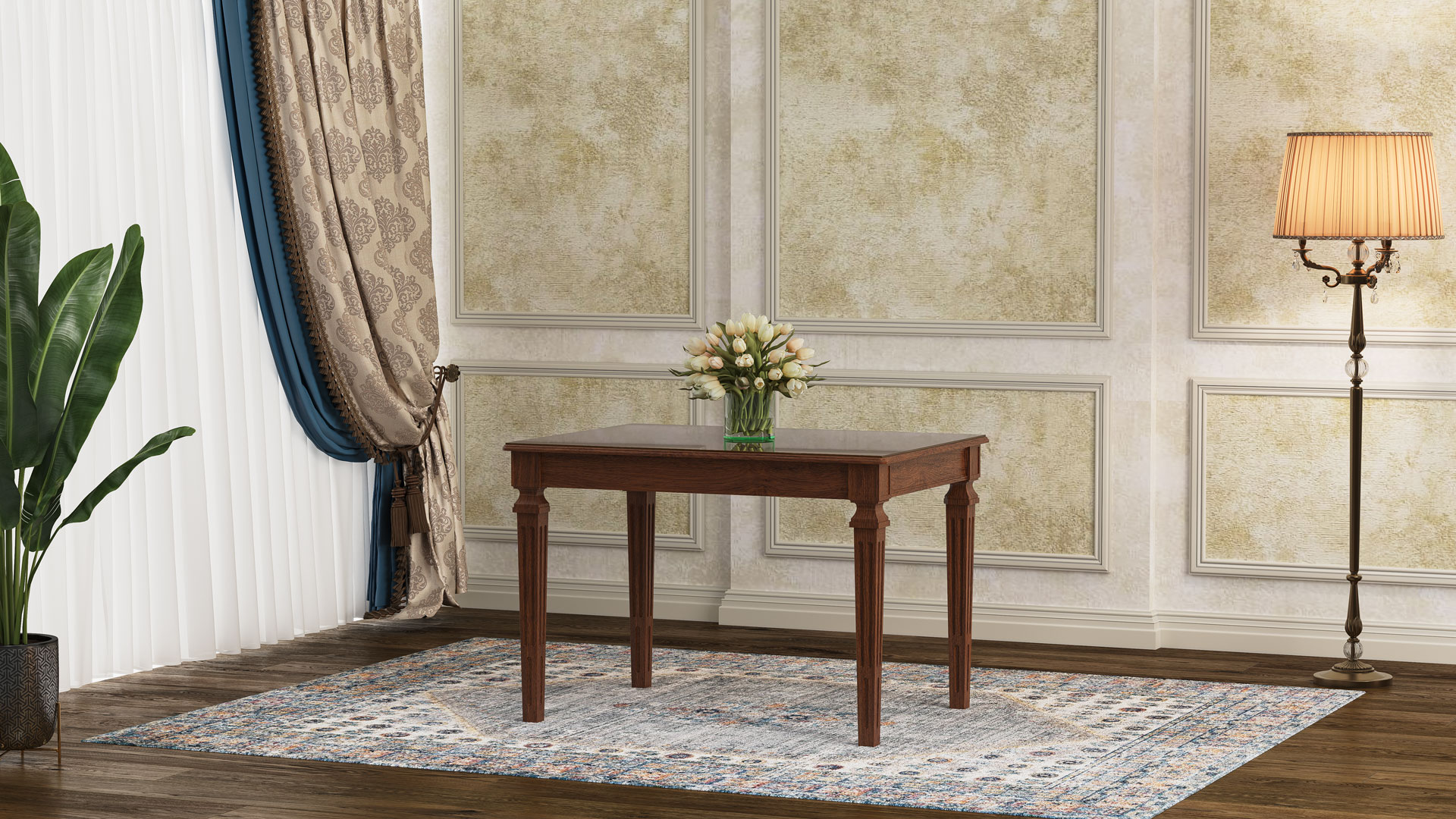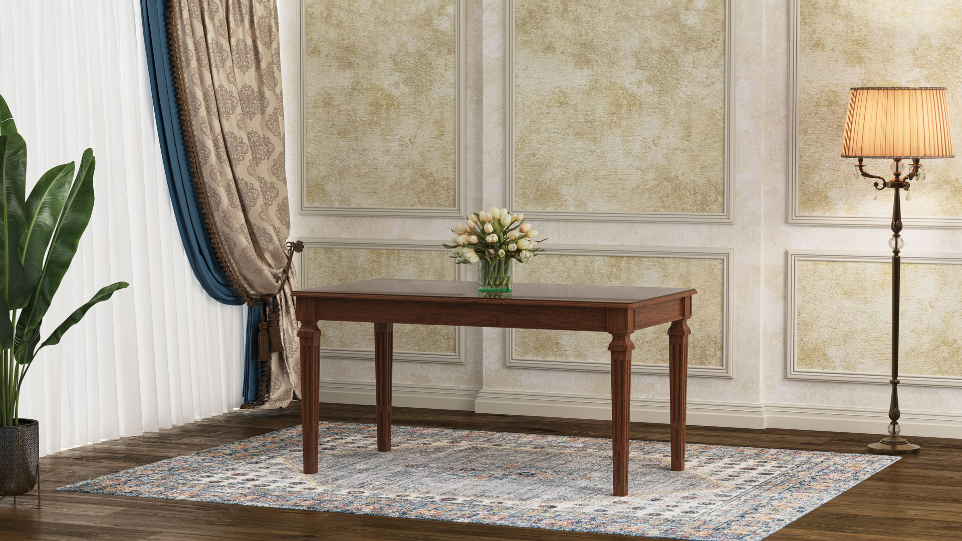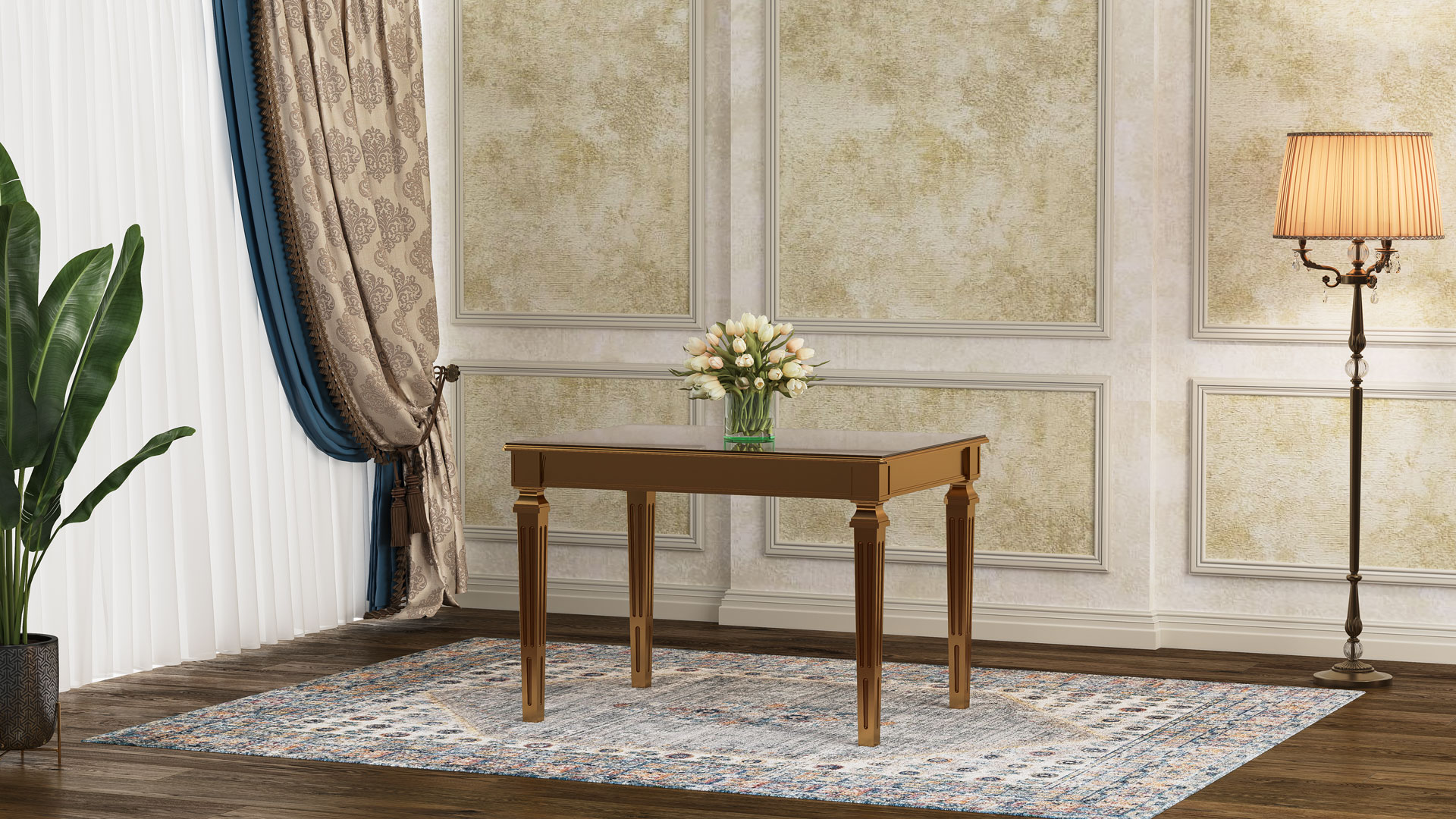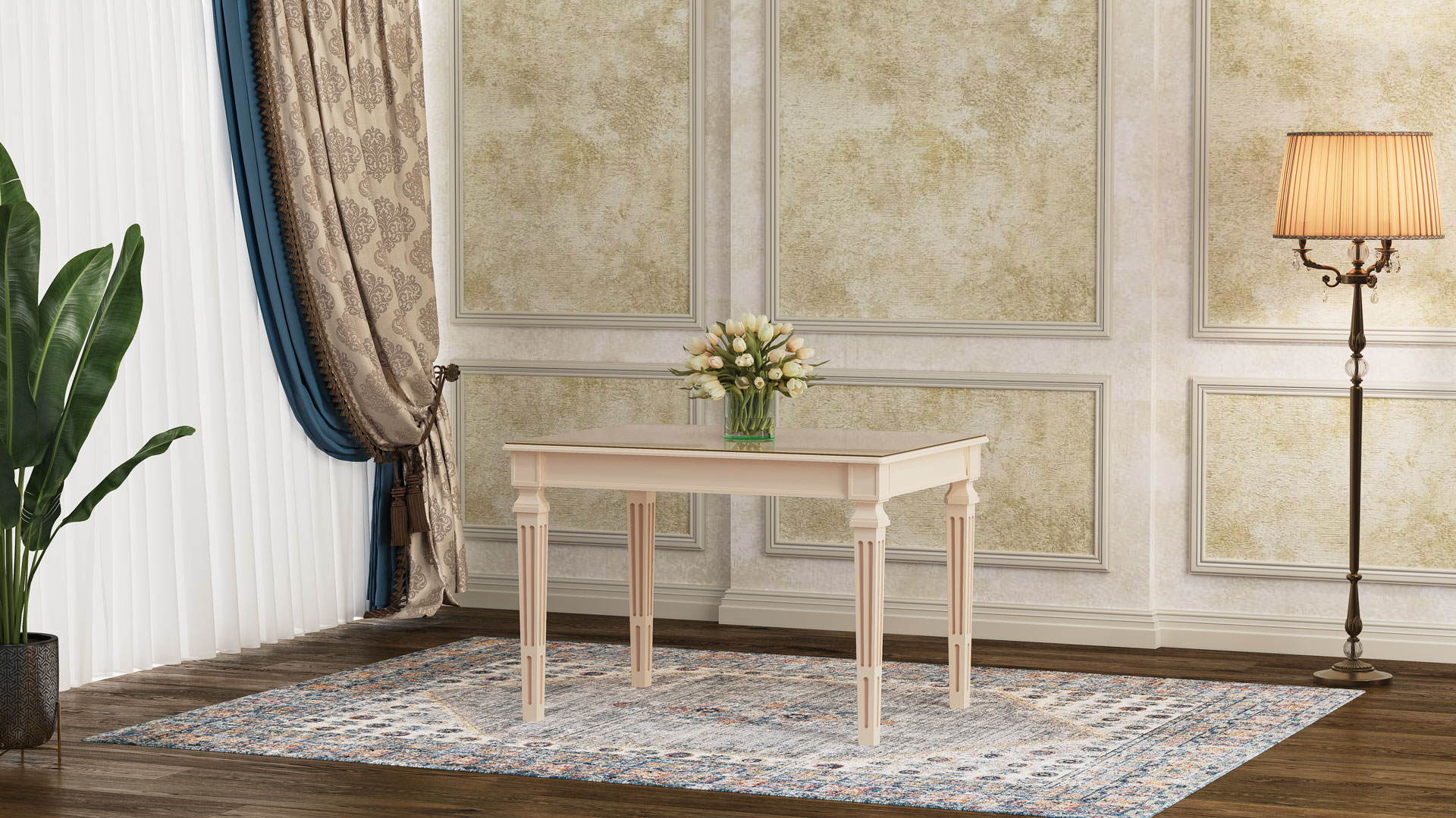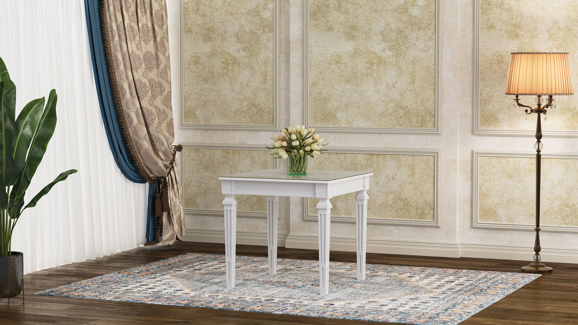 طاولة لوئیز بوليمرية مع سطح MDF وزجاج مقوى