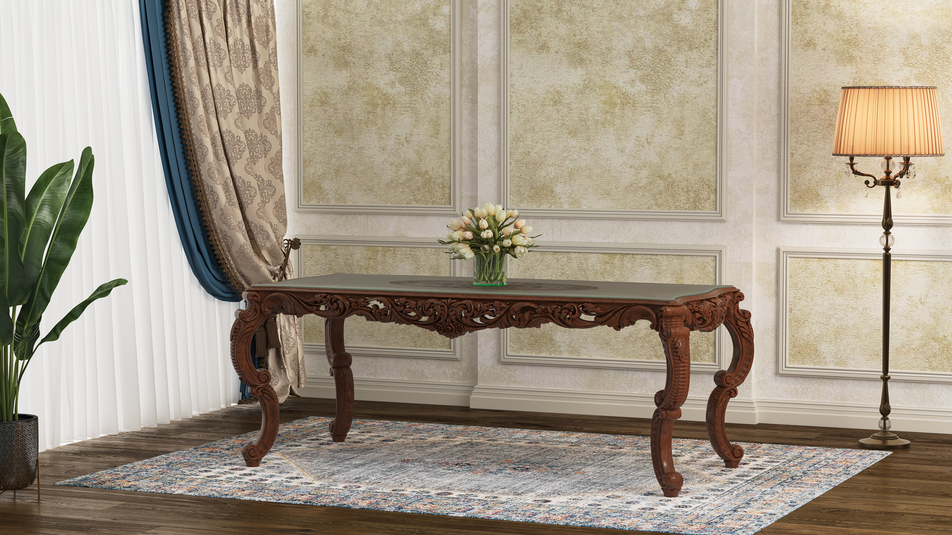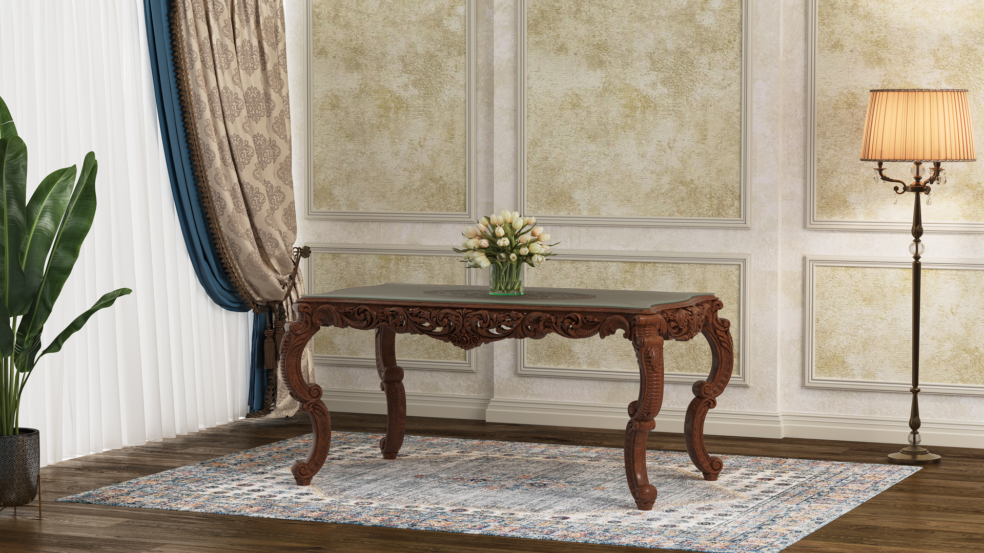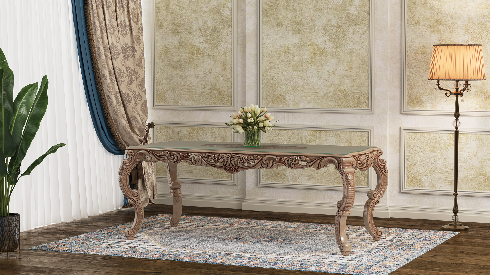 طاولة روناک بوليمرية مع سطح MDF وزجاج مقوى