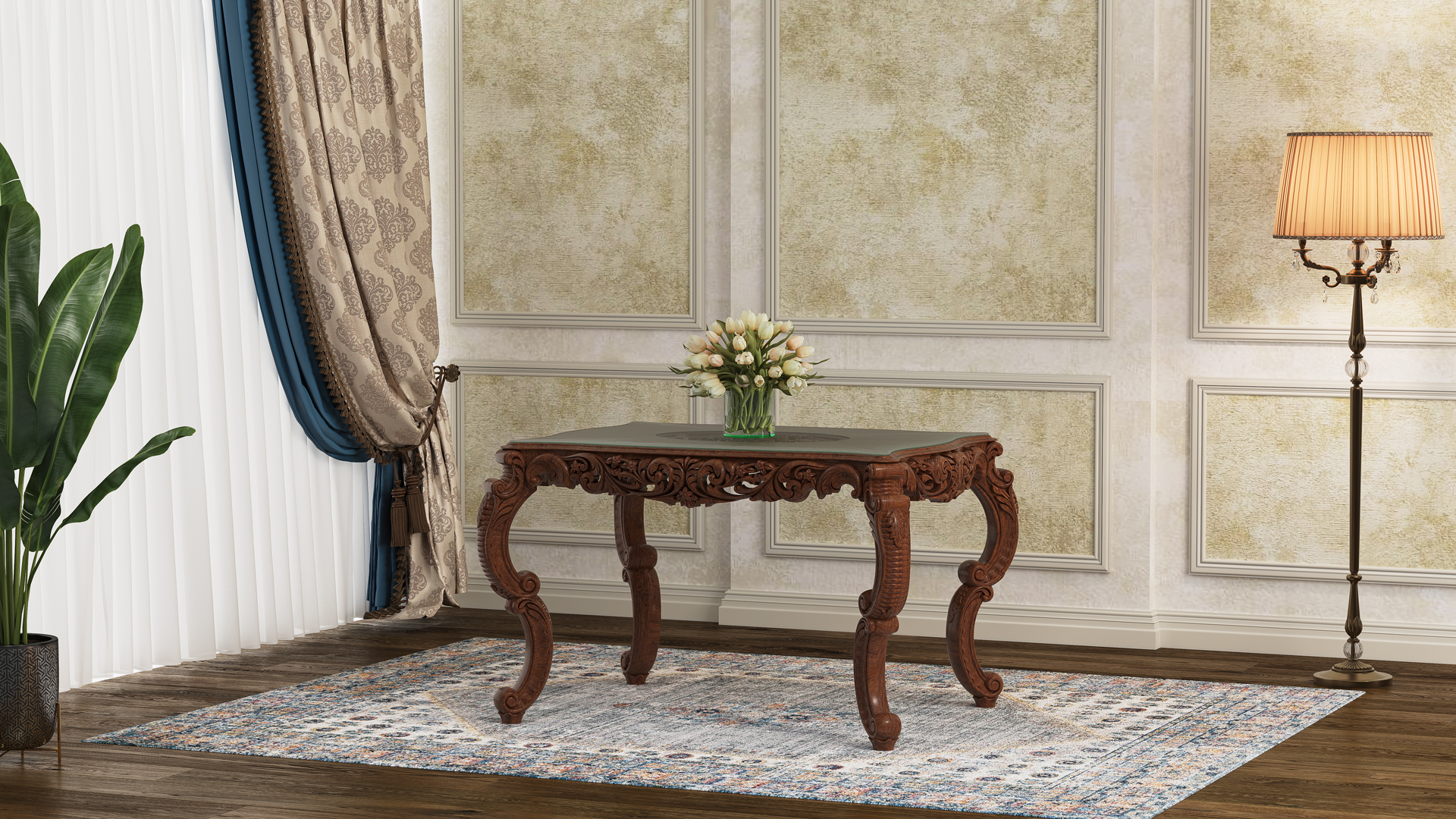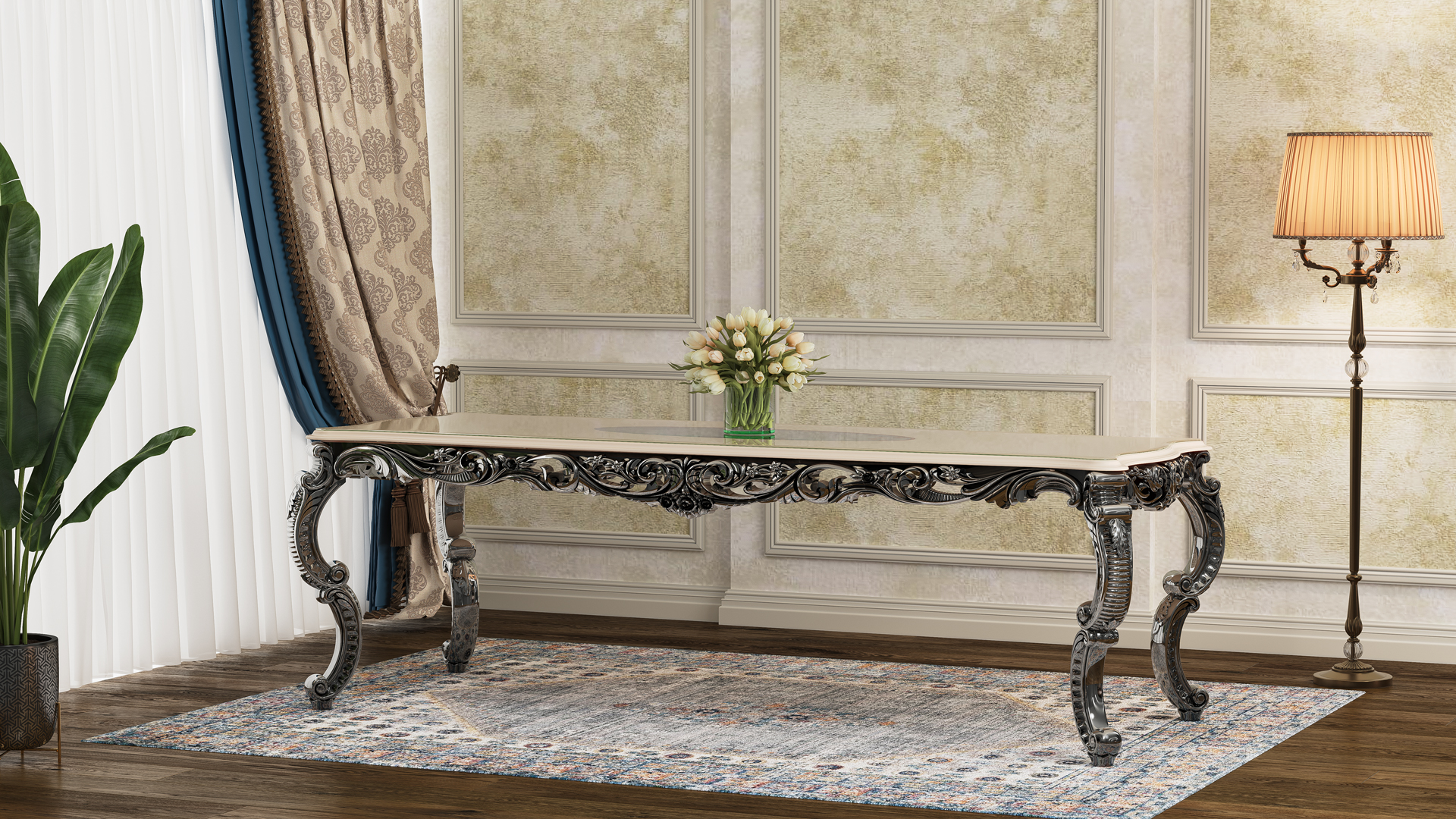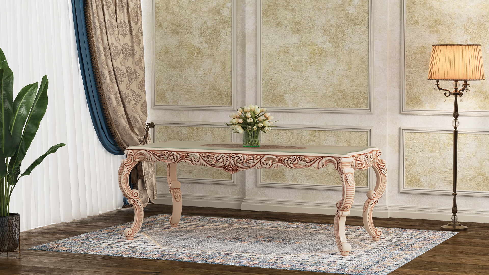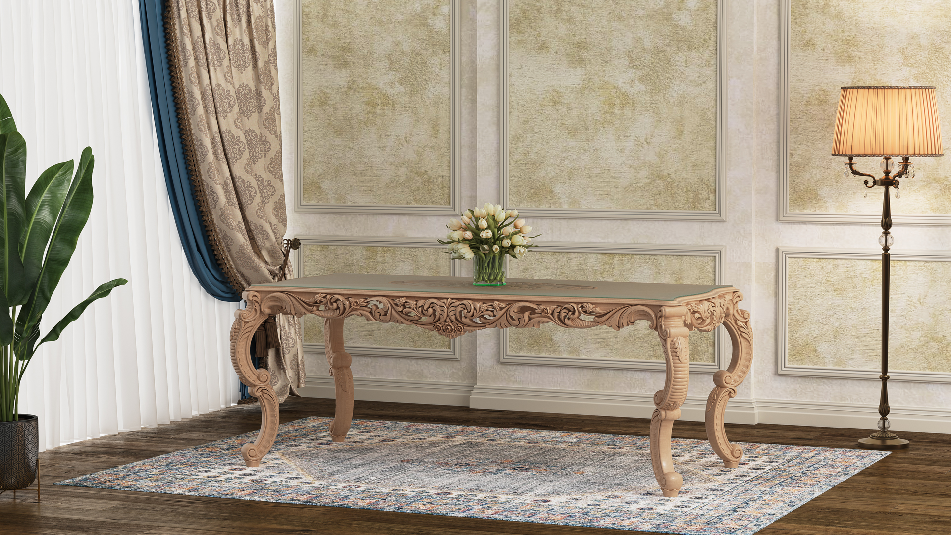 طاولة روناک بوليمرية مع سطح MDF وزجاج مقوى