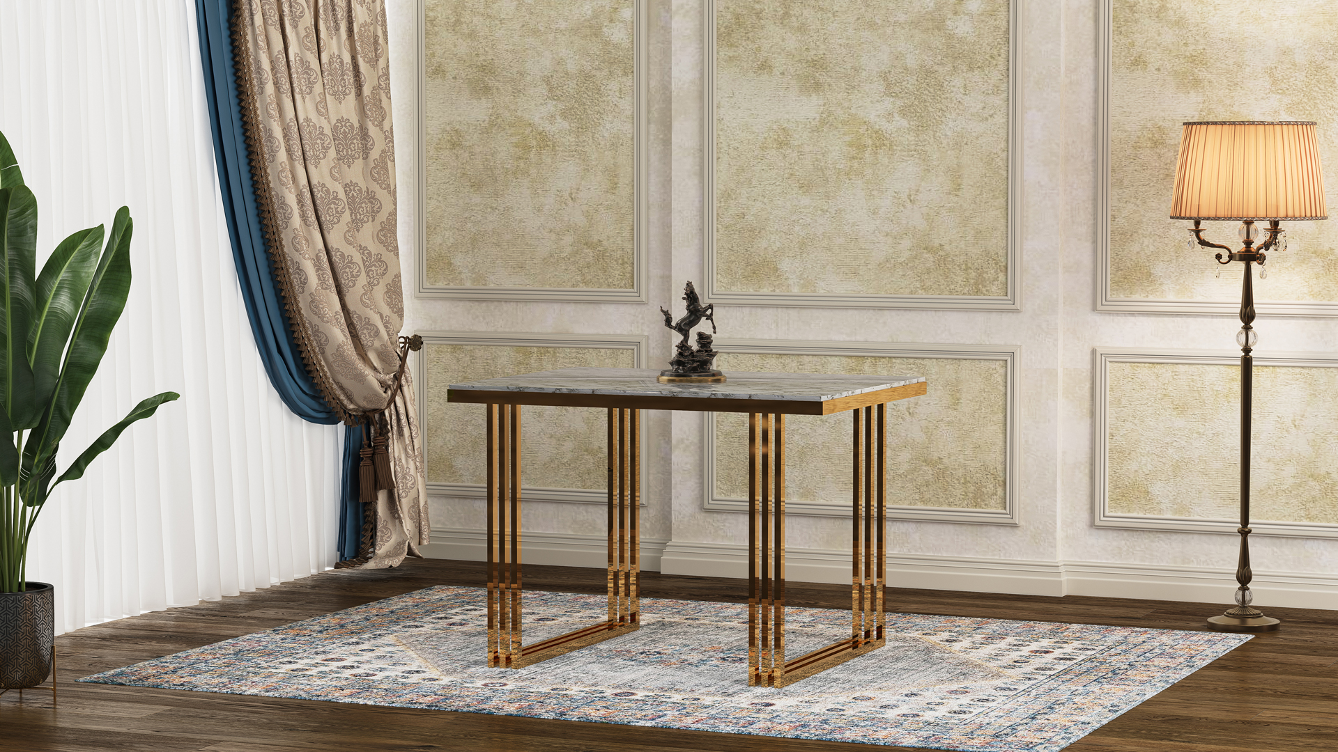 يتوفر هذا المنتج بلونين عصريين وجذابين: الأسود الكهروستاتيكي والفولاذ الذهبي. كلا اللونين مزودان بطبقة مقاومة للخدوش وتغير اللون، مما يضمن الحفاظ على مظهر الطاولة لفترة طويلة. كما يمكن طلب ألوان خاصة تناسب ذوق العميل واحتياجاته.