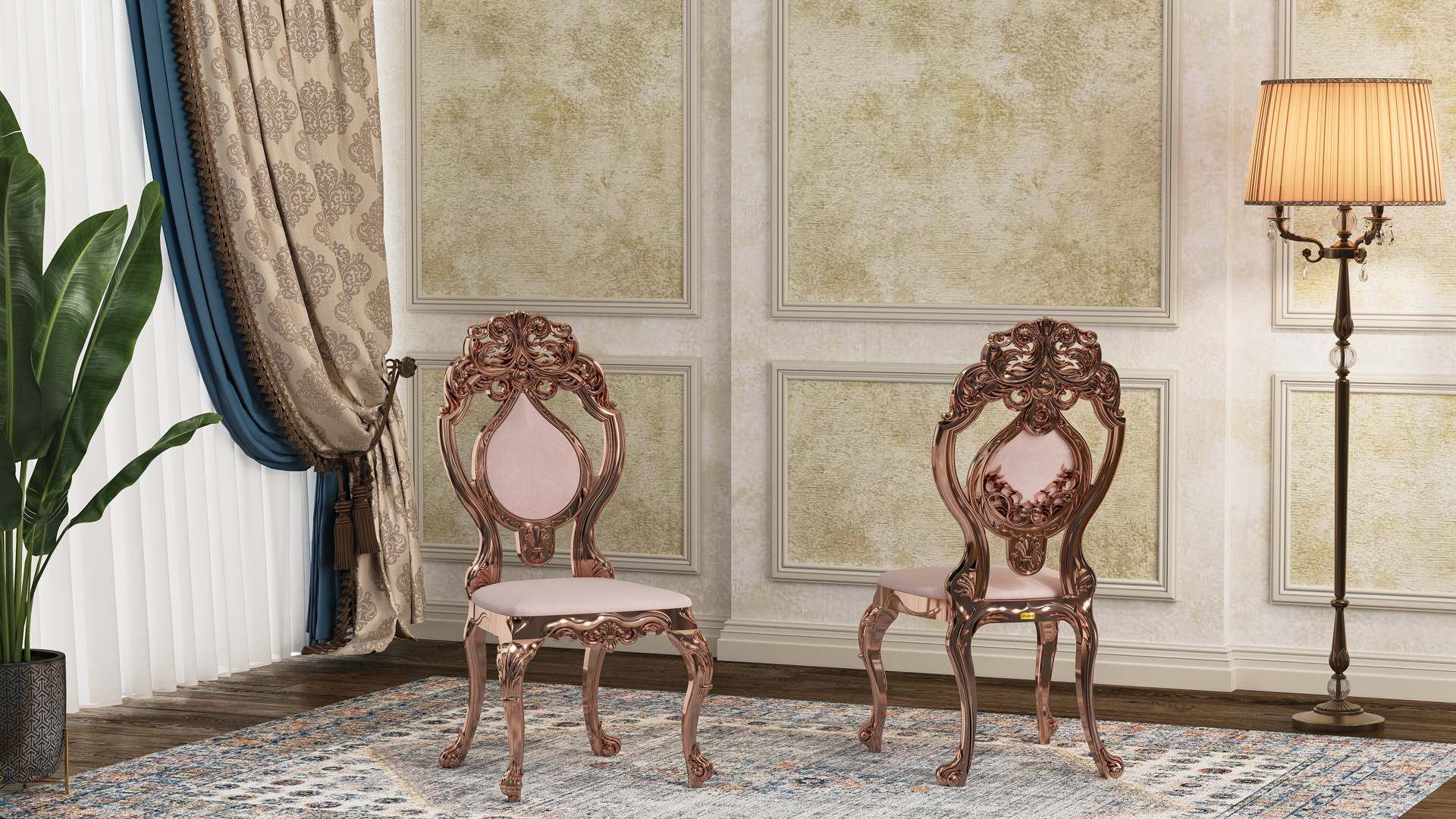 كل خط وانحناء في الكرسي البوليمري دياموند يحمل قصة من عصرٍ مهيب مضى. بفضل النقوش الدقيقة وتصميمه الفريد، يعكس أصالة الفنون الرفيعة لأسلوبي الباروك والروكوكو. فالظهر والأرجل بزخارفها وانحناءاتها البارزة يحوّلان المساحة الداخلية إلى تحفة فنية تضيف لمسة من الفخامة.