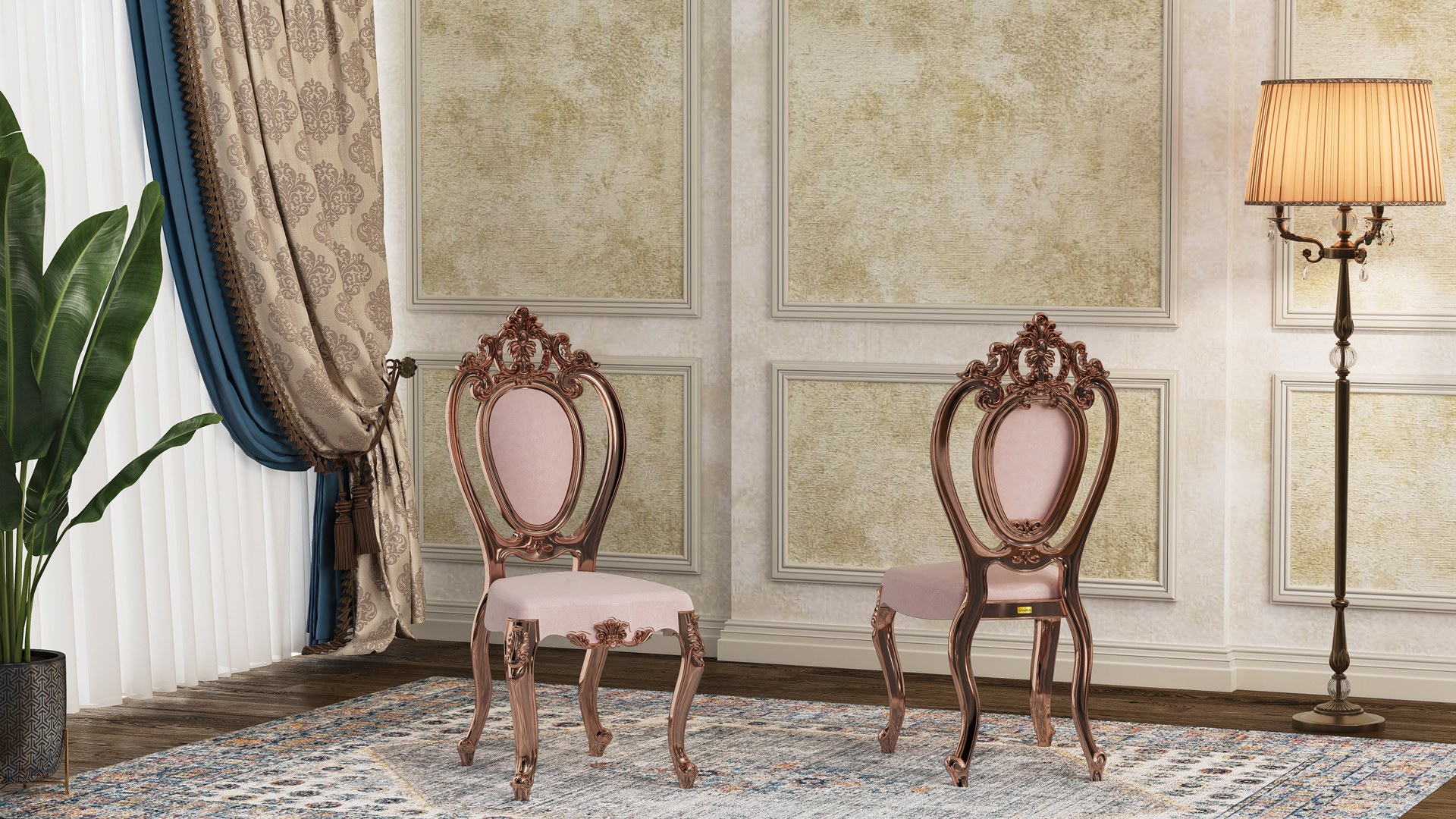 تُستخدم في هذا الكرسي ألوان بولي يوريثان مقاومة للماء، وقد تم تجفيفها في أفران خاصة لزيادة ثبات اللون بشكل ملحوظ. يُطرح الكرسي بعشرة ألوان جذابة ومتنوعة تشمل: الذهبي، اللؤلؤي، البيج، الجوزي، اللون الطبيعي، الأبيض، إضافةً إلى الألوان المطلية بالكهرباء مثل الفضي، الرمادي الداكن، النحاسي (الروز غولد)، والذهبي. كما يمكن طلب المنتج باللون المخصّص ليتناسب مع ديكور المكان. في النسخ المطلية بالكهرباء، تُغطّى سطح الكرسي بطبقة معدنية تمنحه لمعانًا أنيقًا، وتوفّر في الوقت نفسه حماية إضافية ضد التآكل والخدوش، مما يزيد من متانته.