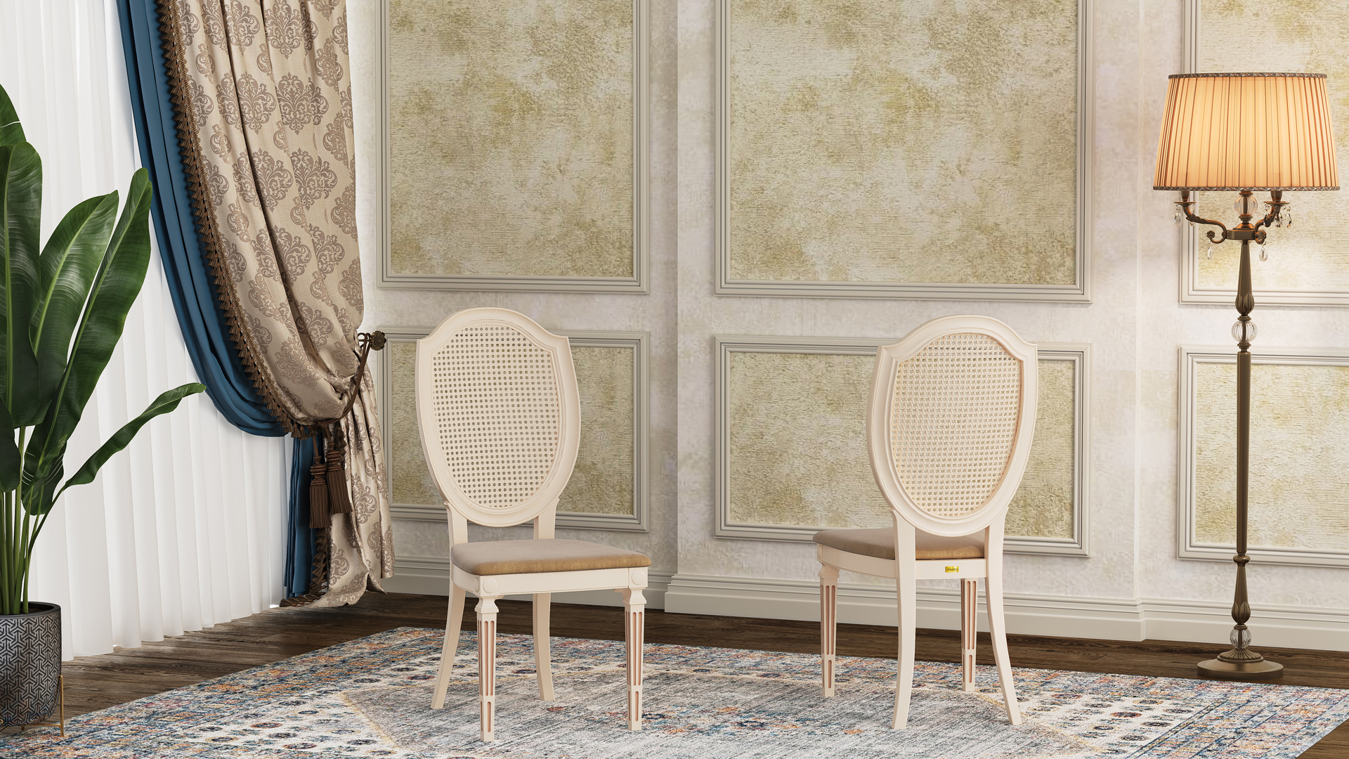 تُستخدم في هذا الكرسي ألوان بولي يوريثان مقاومة للماء، وقد تم تجفيفها في أفران خاصة لزيادة ثبات اللون بشكل ملحوظ. يُطرح الكرسي بعشرة ألوان جذابة ومتنوعة تشمل: الذهبي، اللؤلؤي، البيج، الجوزي، اللون الطبيعي، الأبيض، إضافةً إلى الألوان المطلية بالكهرباء مثل الفضي، الرمادي الداكن، النحاسي (الروز غولد)، والذهبي. كما يمكن طلب المنتج باللون المخصّص ليتناسب مع ديكور المكان. في النسخ المطلية بالكهرباء، تُغطّى سطح الكرسي بطبقة معدنية تمنحه لمعانًا أنيقًا، وتوفّر في الوقت نفسه حماية إضافية ضد التآكل والخدوش، مما يزيد من متانته.