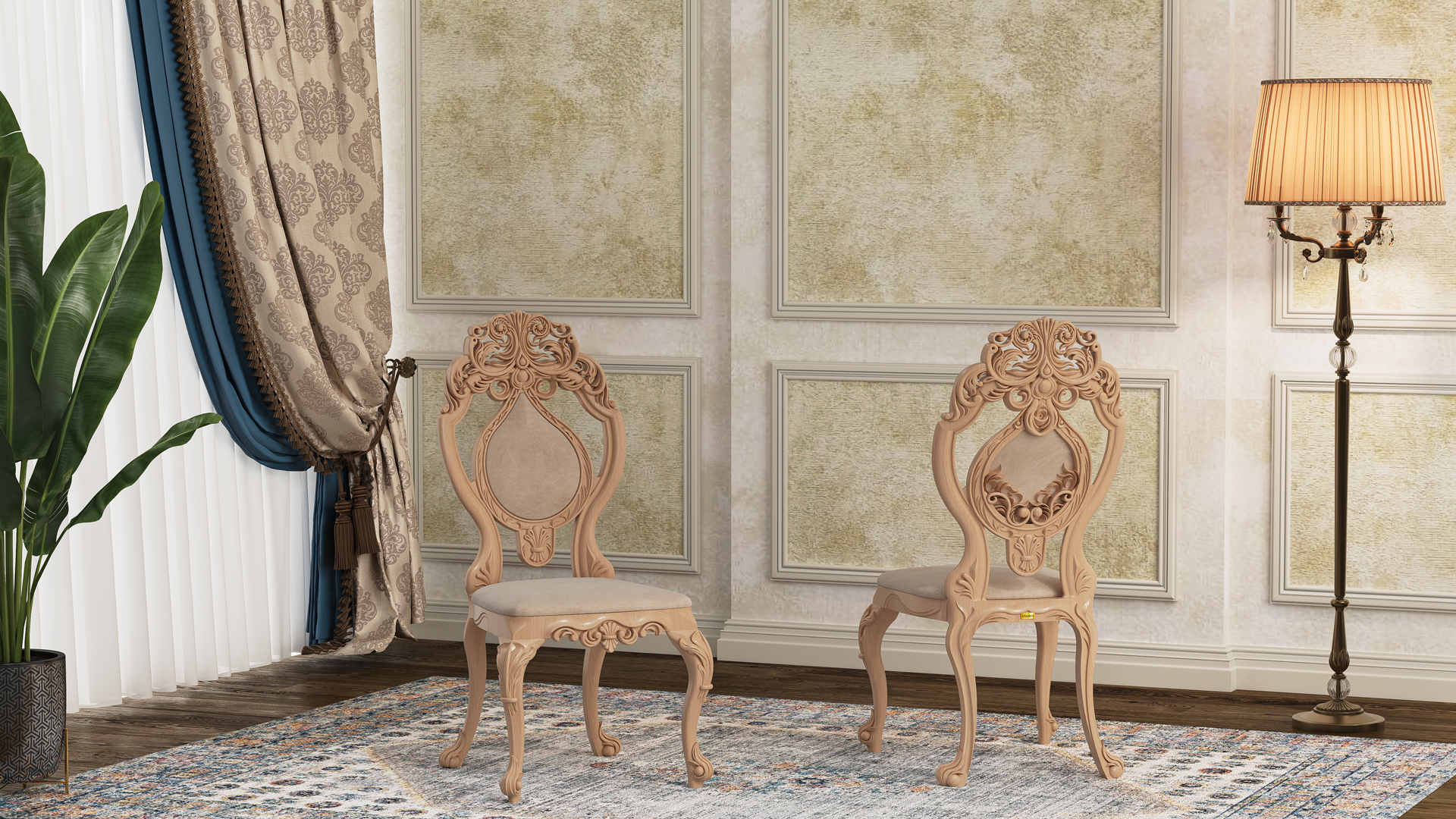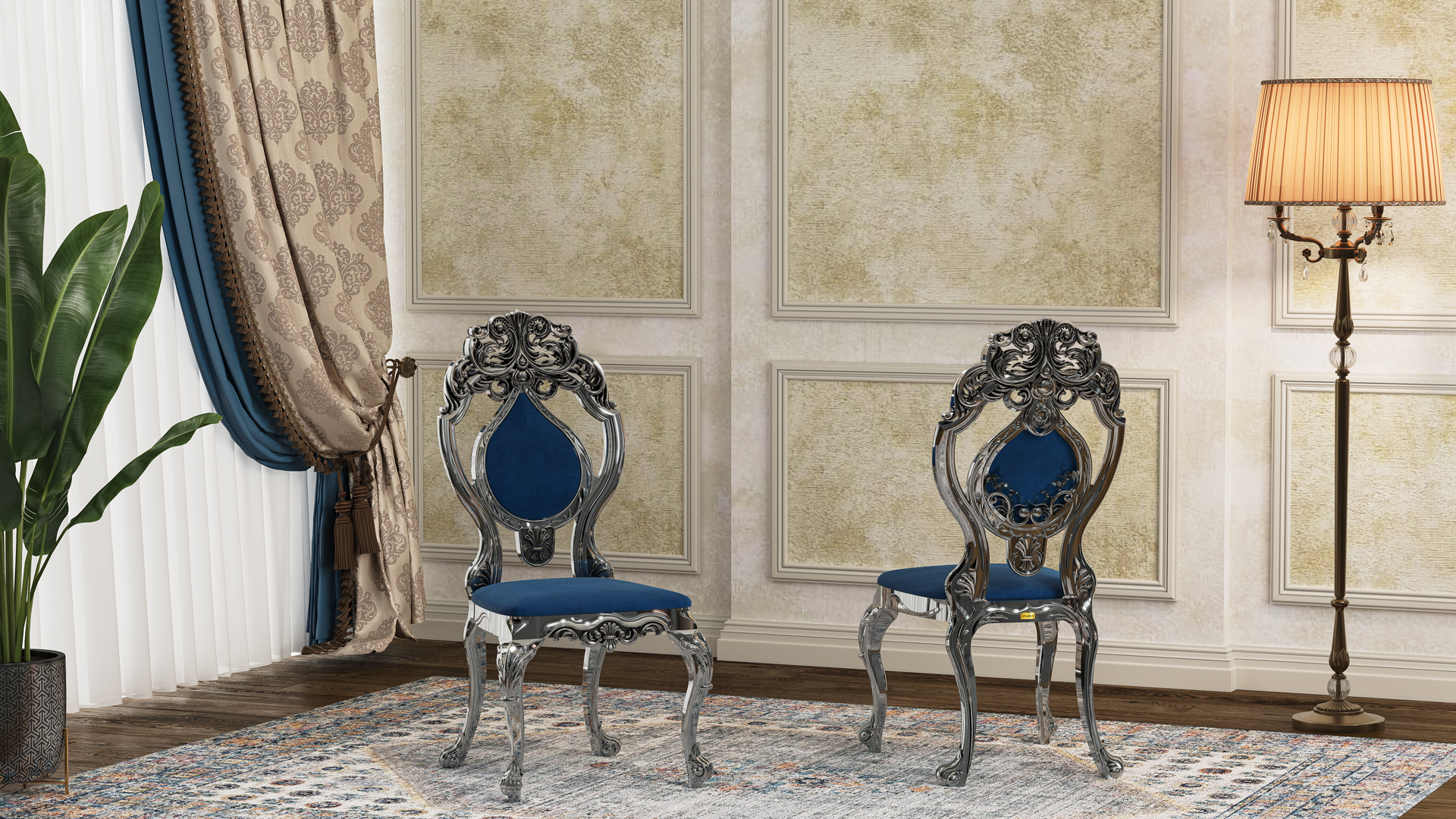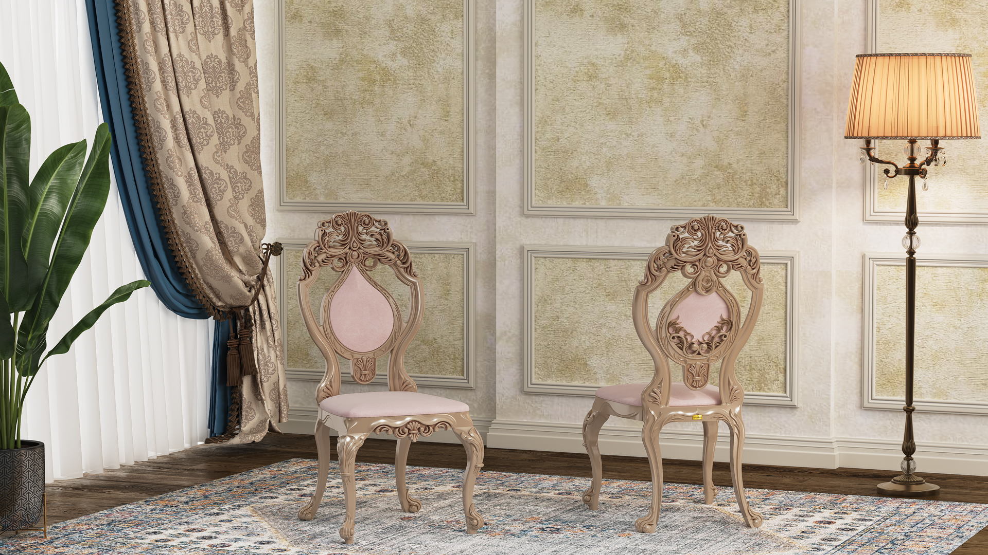 يبدو أن كل خط ومنحنى في كرسي تالاري دياموند يحمل قصة من عصر مضى مليء بالمجد. هذا الكرسي بتفاصيله المنقوشة الدقيقة وتصميمه الفريد يعرض أصالة فنون الباروكية والروكوكو. ظهره وقاعدته بتفاصيلها المتقنة والانحناءات المميزة، تجعل من هذا الكرسي تحفة فنية تزين مساحتك وتضيف لمسة من الفخامة. كرسي تالاري دياموند يتمتع بمظهر فاخر وهو مناسب للأماكن الرسمية والفاخرة مثل غرف الطعام، صالات الاستقبال، المطاعم الفاخرة، واللوبيات في الفنادق الفاخرة.