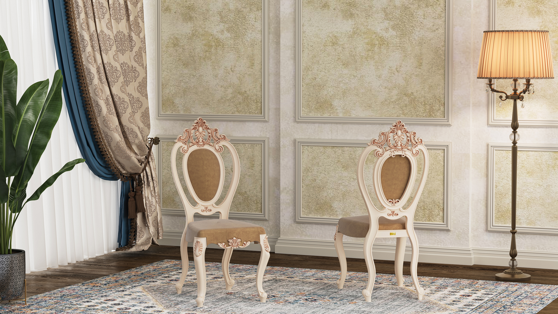 كرسي تالاري كارن بتصميمه الفاخر ودمج الأساليب الكلاسيكية والعصرية، المستوحى من عصر النيوكلاسيكية، كأنه خرج من قصر فاخر في القرن الثامن عشر ليضيف الجمال والهيبة إلى مساحتك الداخلية. ظهر الكرسي البيضاوي ذو الانحناءات الجذابة يوفر راحة أكبر للجلوس ويزيد من الجمال البصري للكرسي. كرسي تالاري كارن مناسب لصالات الاستقبال الرسمية، الفنادق الفاخرة، المطاعم، والقاعات المهيبة.