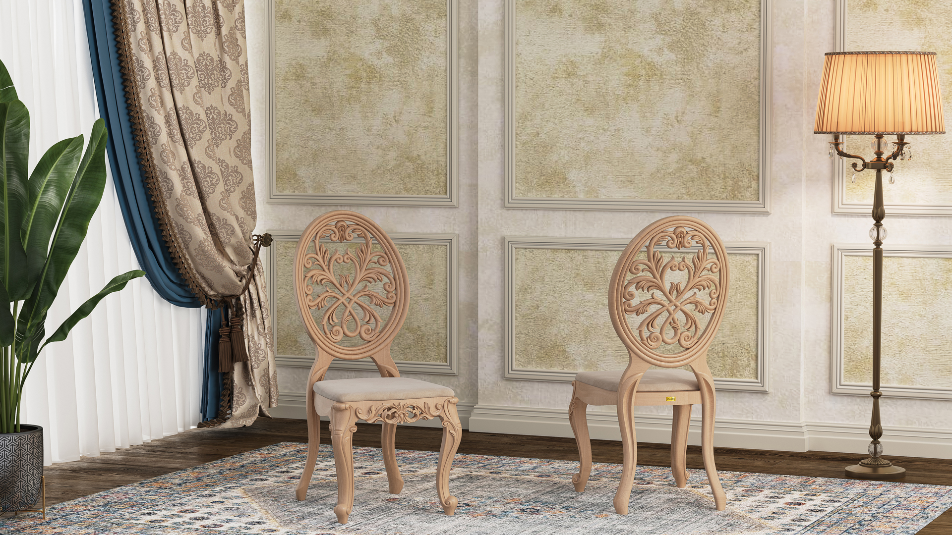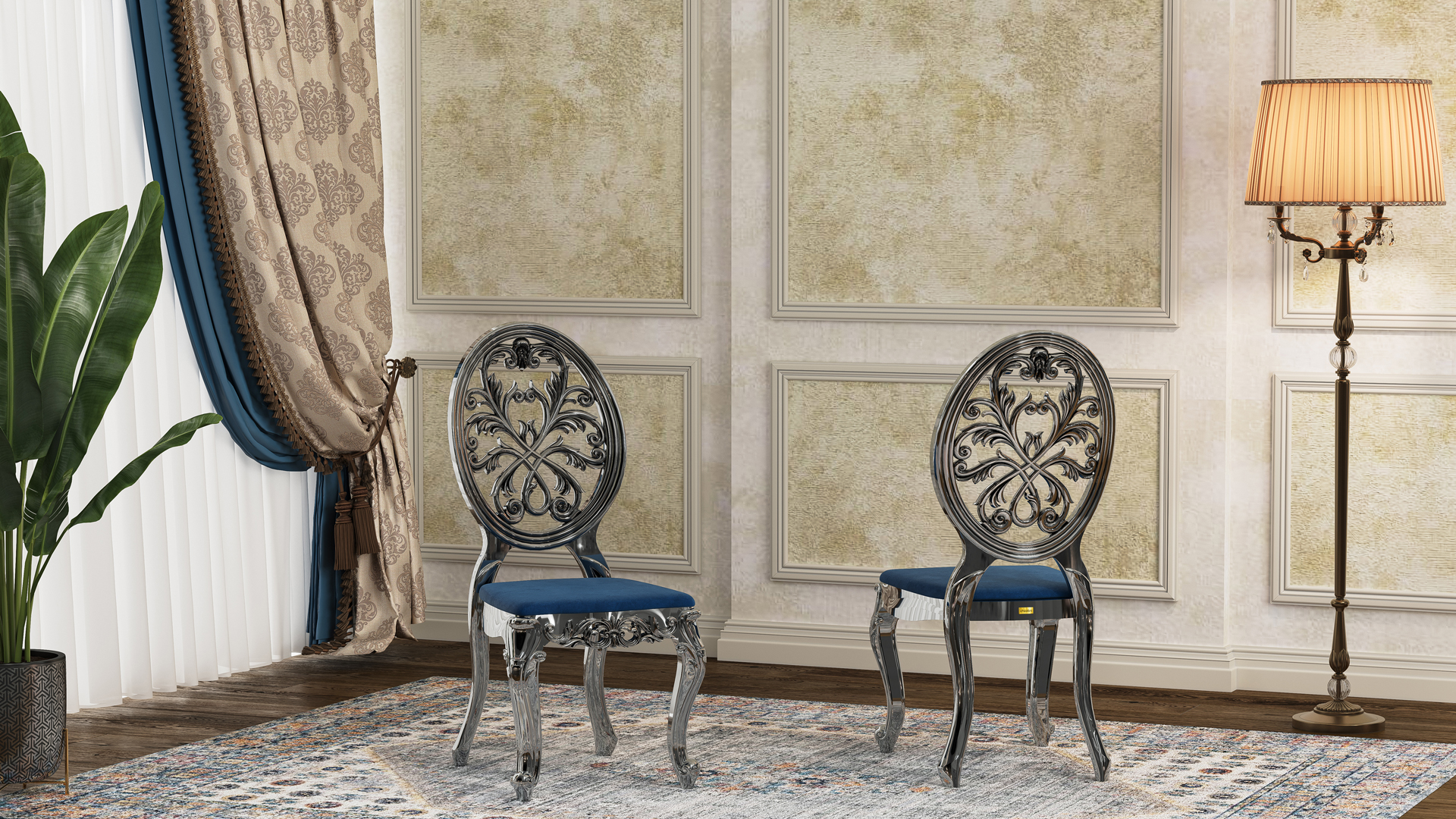 كرسي تالاري رهام بتصميمه المميز هو تفاعل فني بين الطبيعة والهندسة. النقوش الدقيقة على الظهر البيضاوي تضفي إحساسًا بالتناغم والتوازن الذي نادرًا ما يوجد في المنتجات المماثلة.