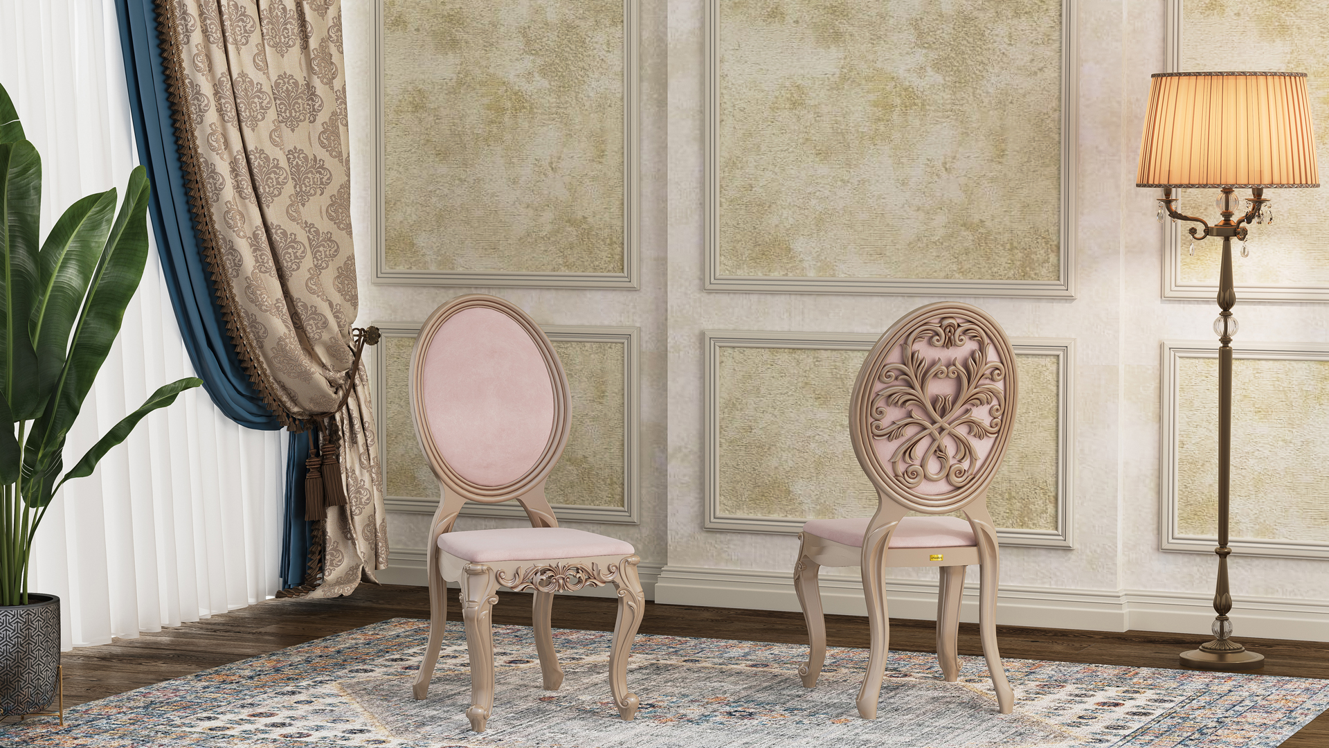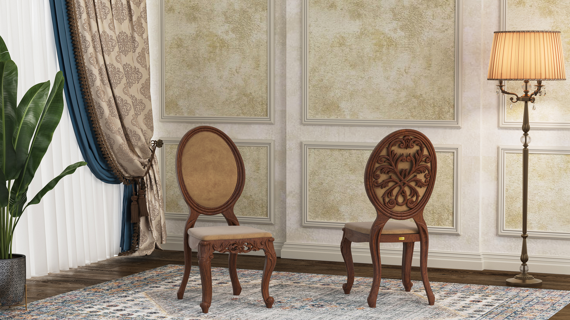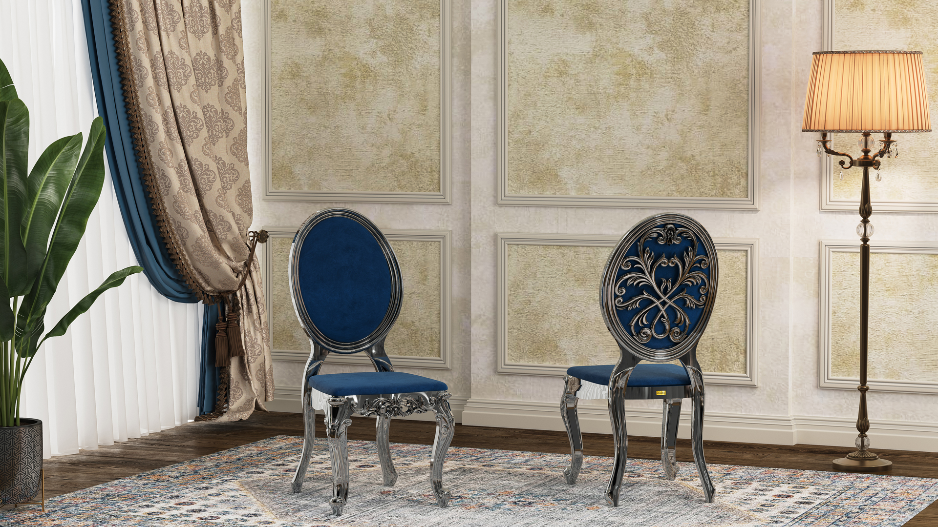 كرسي تالاري رهام مبلم بتصميمه المميز، يذكرنا بالتفاعل الفني بين الطبيعة والهندسة. النقوش الدقيقة على ظهره البيضاوي تضفي إحساسًا بالتناغم والتوازن الذي يصعب إيجاده في المنتجات المماثلة.