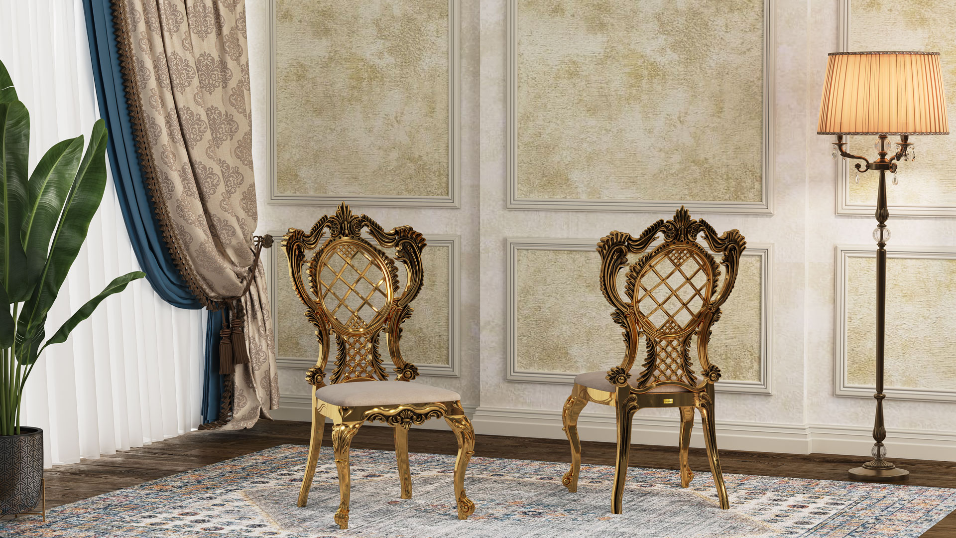كرسي تالاري يونيك بتصميمه المستوحى من قصر فاخر يعرض مزيجًا من الفخامة والتفاصيل الفنية المدهشة. ظهر هذا الكرسي بتصميم شبكي مزخرف يعكس الرقي والجمال الفائق. كل منحنى ونقش على جسم هذا الكرسي تم تصميمه بعناية لتقديم لمسة من الفن الأصيل. القواعد المنحنية والثابتة لهذا الكرسي لا تعكس الجمال الكلاسيكي فقط، بل توفر أيضًا متانة واتزانًا فائقًا للاستخدامات اليومية والمناسبات الخاصة.