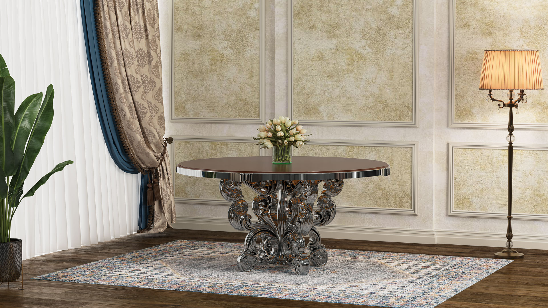| طاولة ولائم اعیان مع زجاج مقوى |