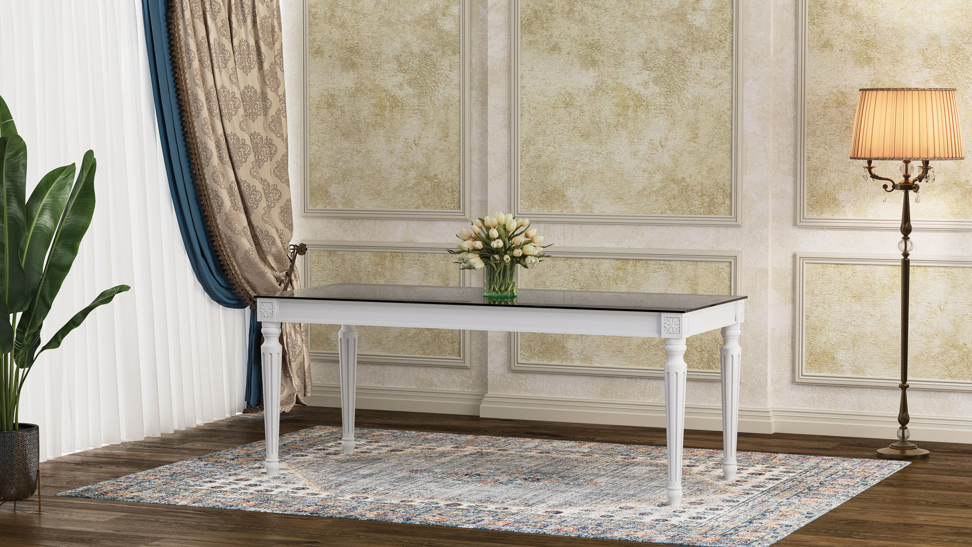 طاولة ولائم دیور مع زجاج مقوى