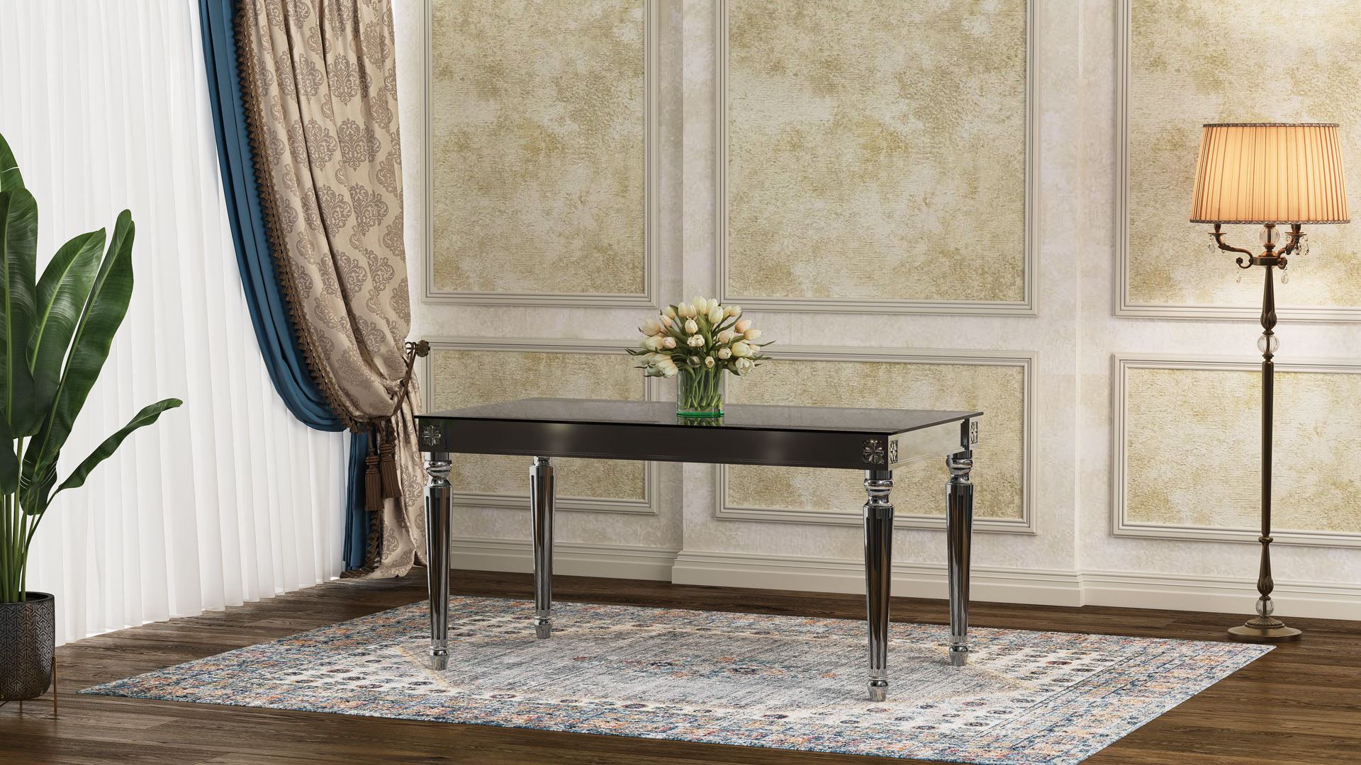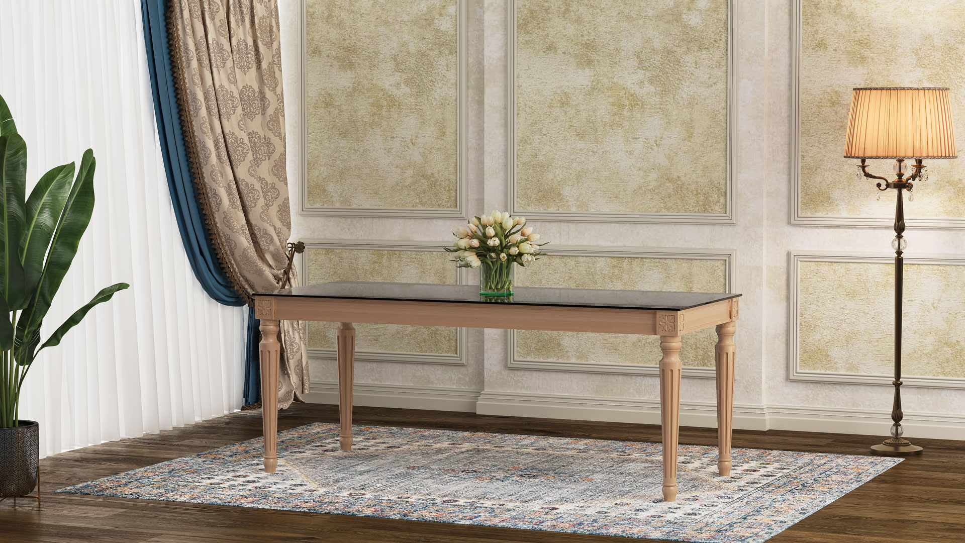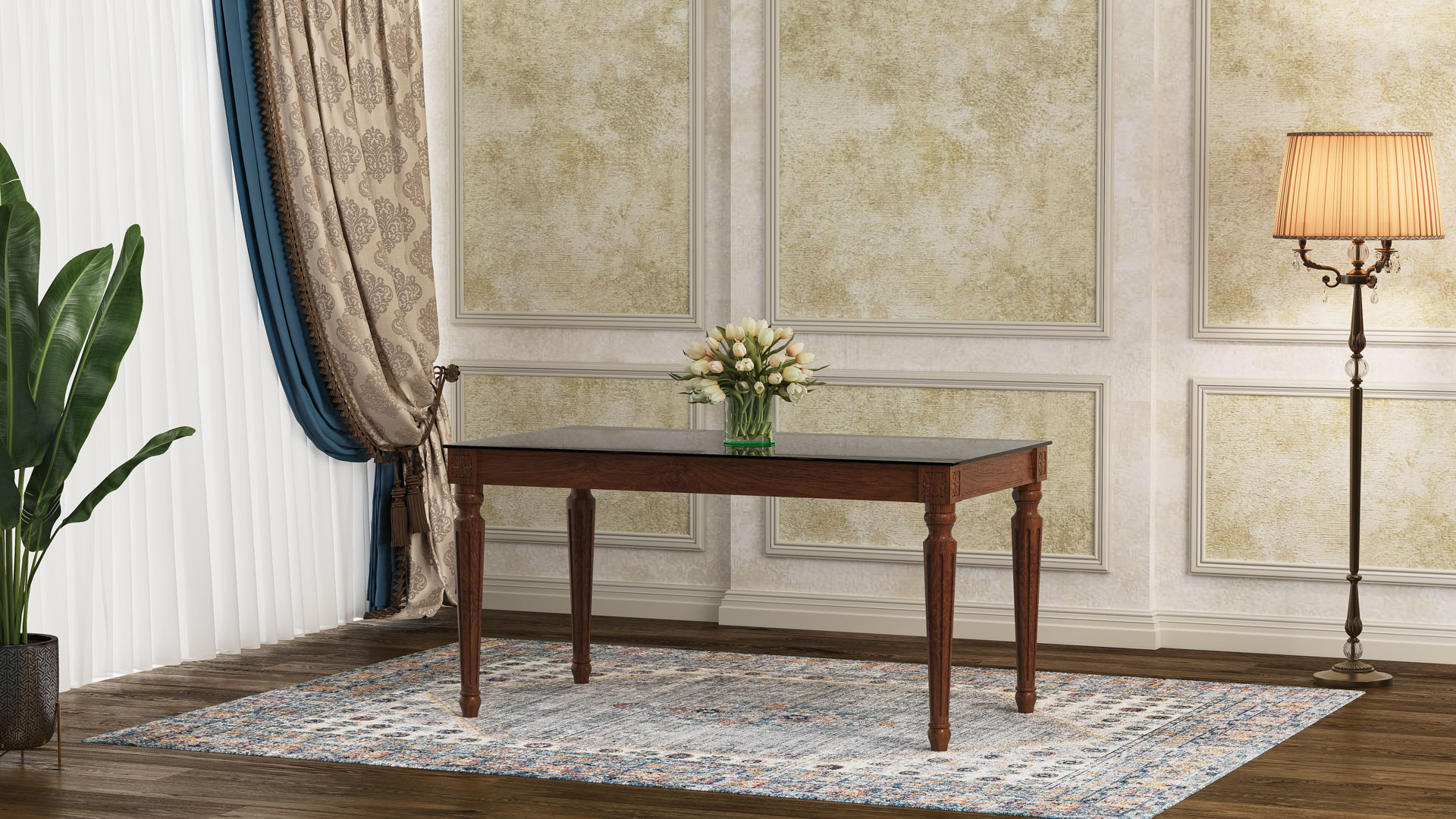 | طاولة ولائم دیور مع زجاج مقوى |