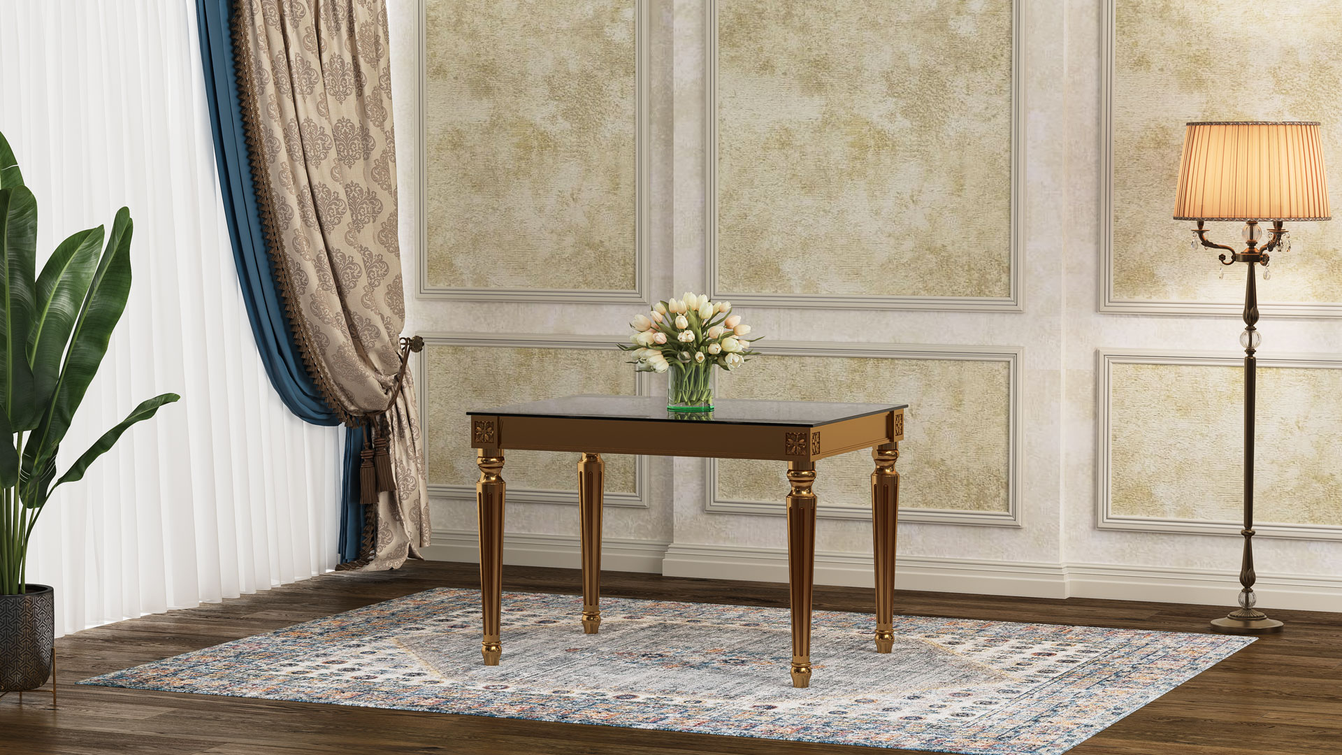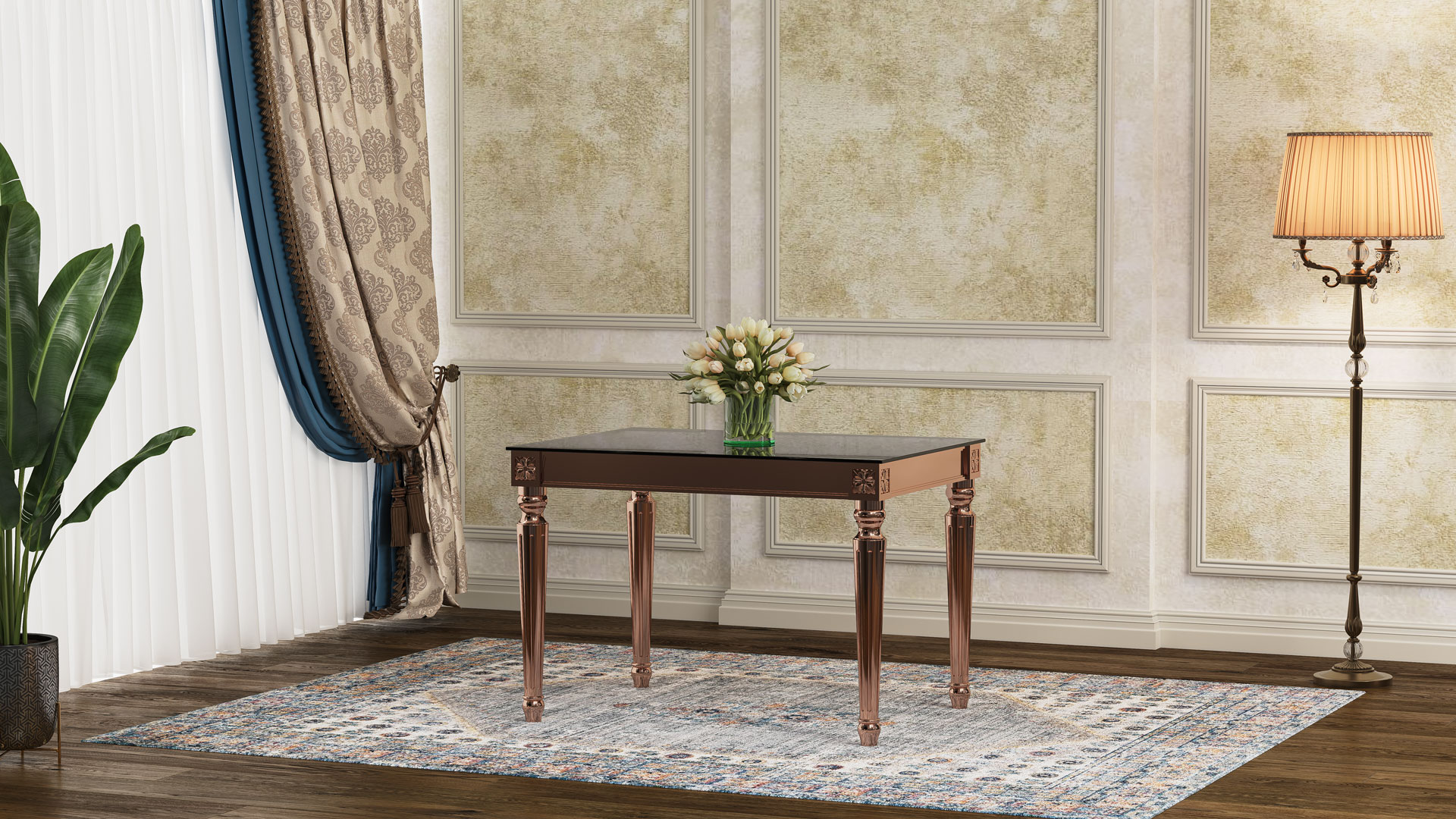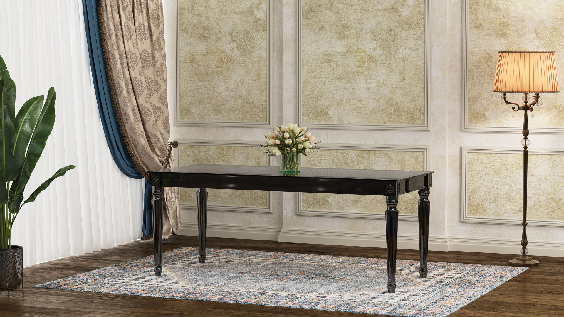 | طاولة ولائم دیور مع زجاج مقوى |