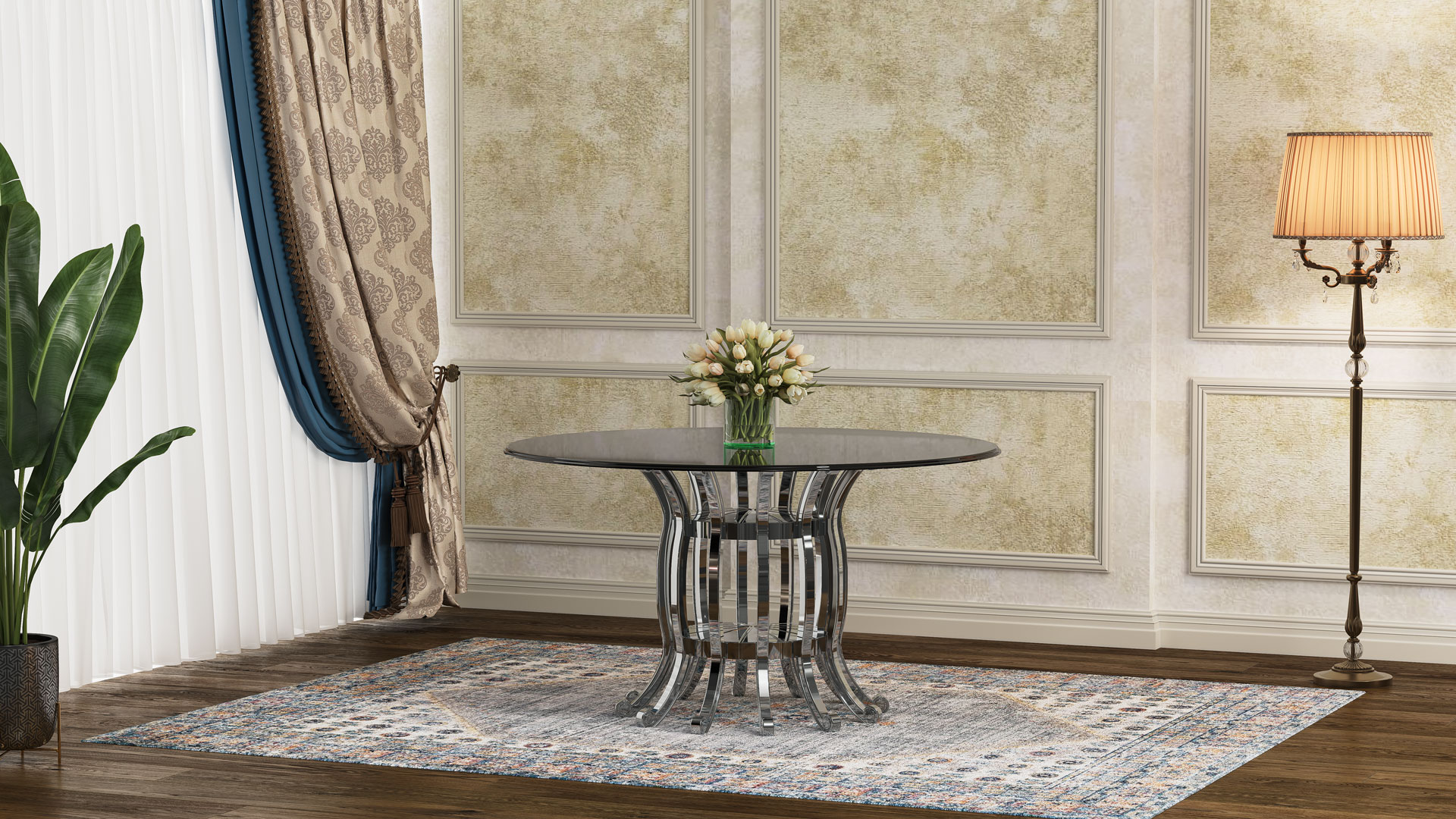 میز تالاری مارال هو مِيز عملي مصمم ببساطة وجمال، يتناسب بسهولة مع أي مساحة. القواعد الرقيقة والمنحنية تخلق توازناً جذاباً، في حين أن السطح الدائري والمصقول يوفر سهولة في الاستخدام والتنقل.