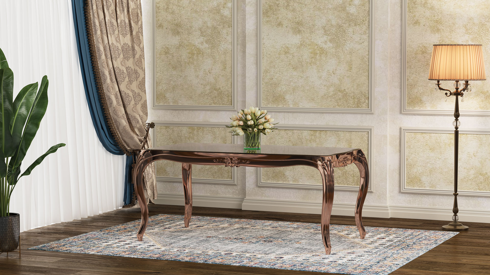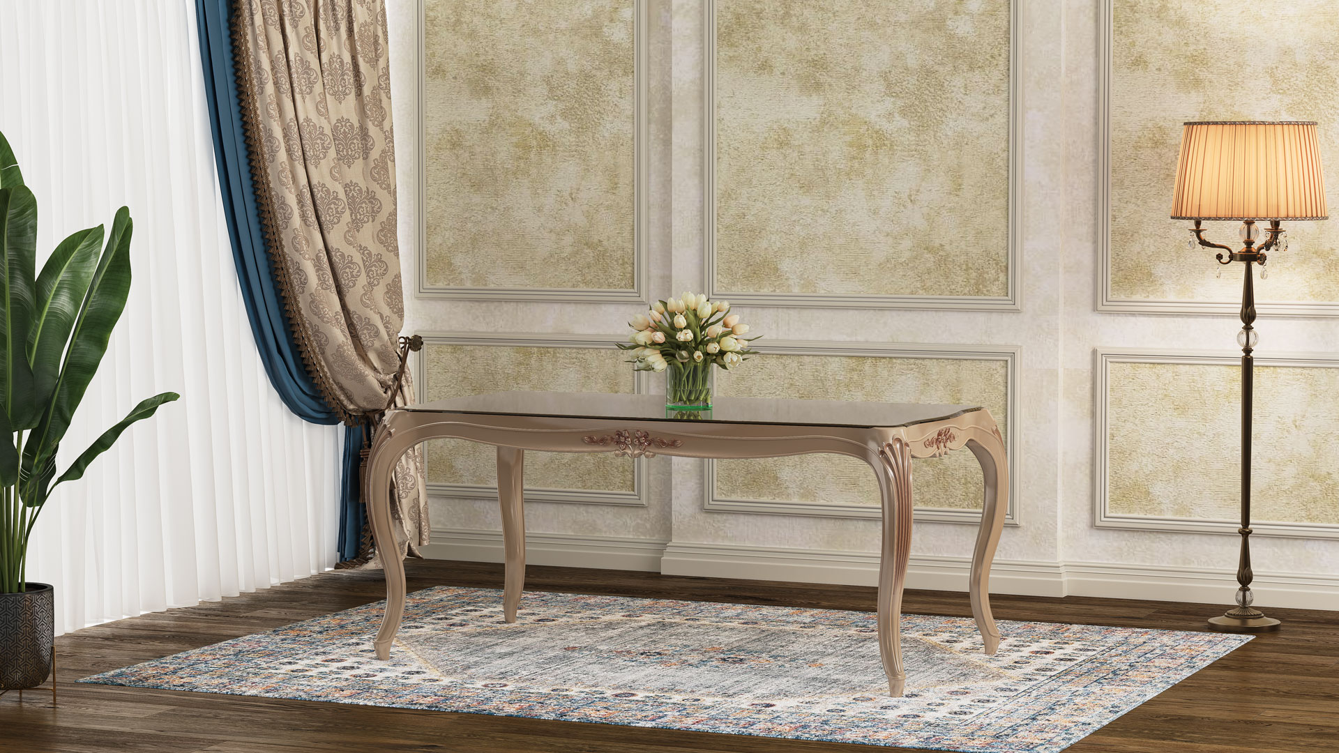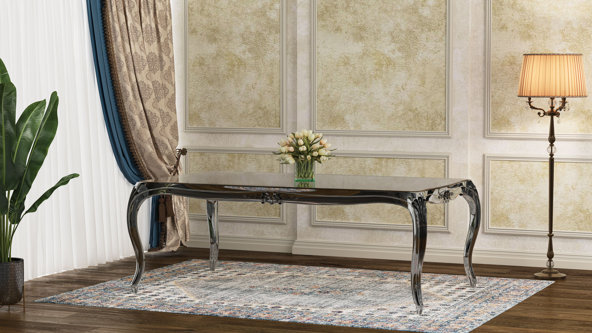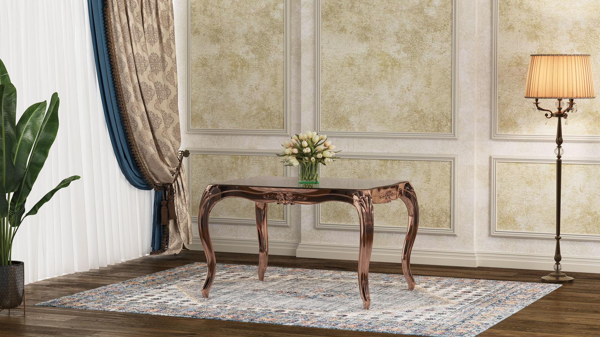 میز تالاری شایان هو مزیج من البساطة والعملية في تصميمه. يتمتع المیز بخطوط ناعمة وقواعد منحنية، مما يمنحه مظهراً ميني مالياً ومتوازناً يتناغم مع أي ديكور.