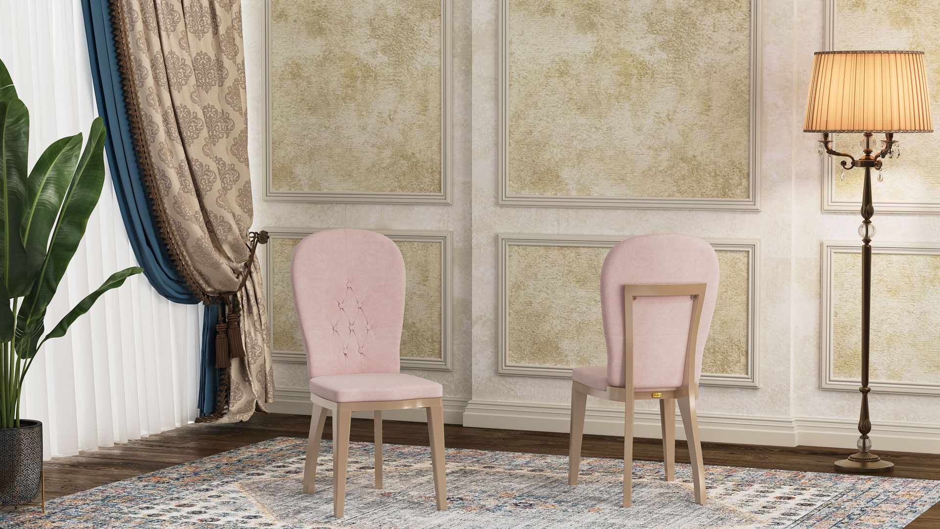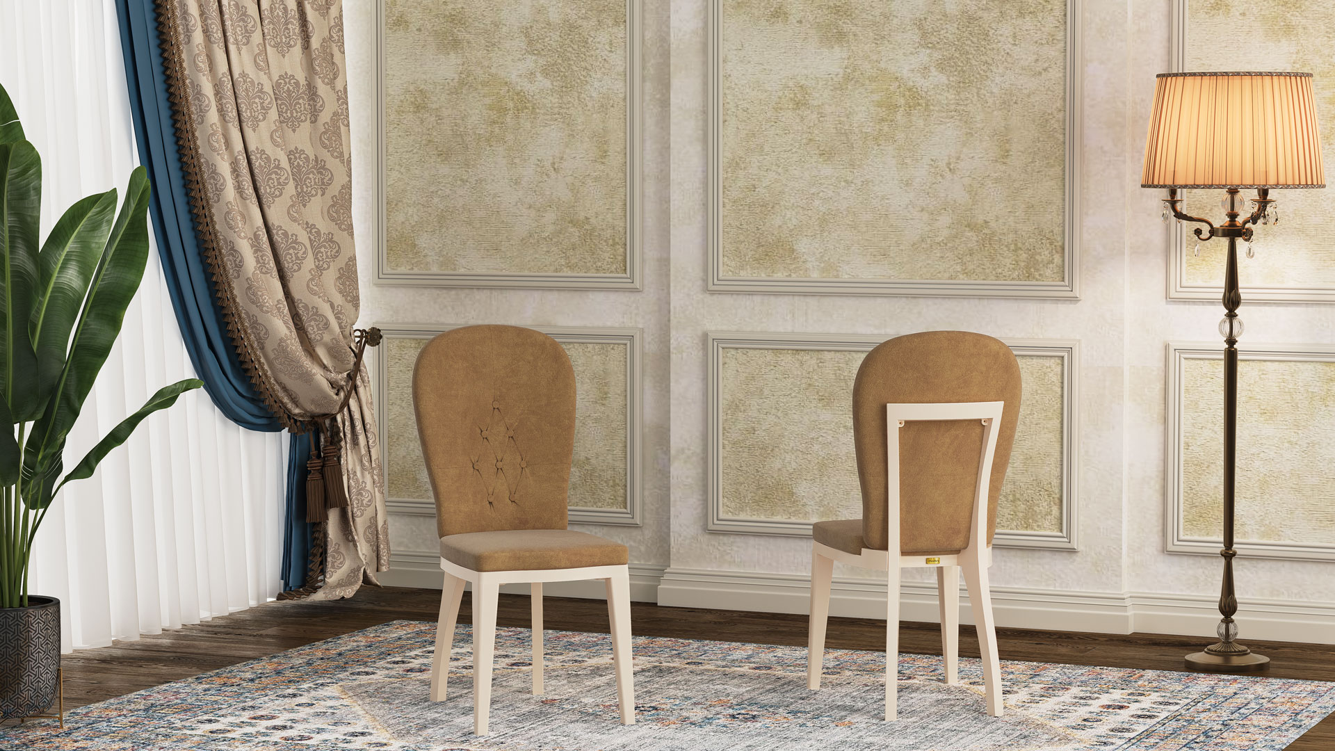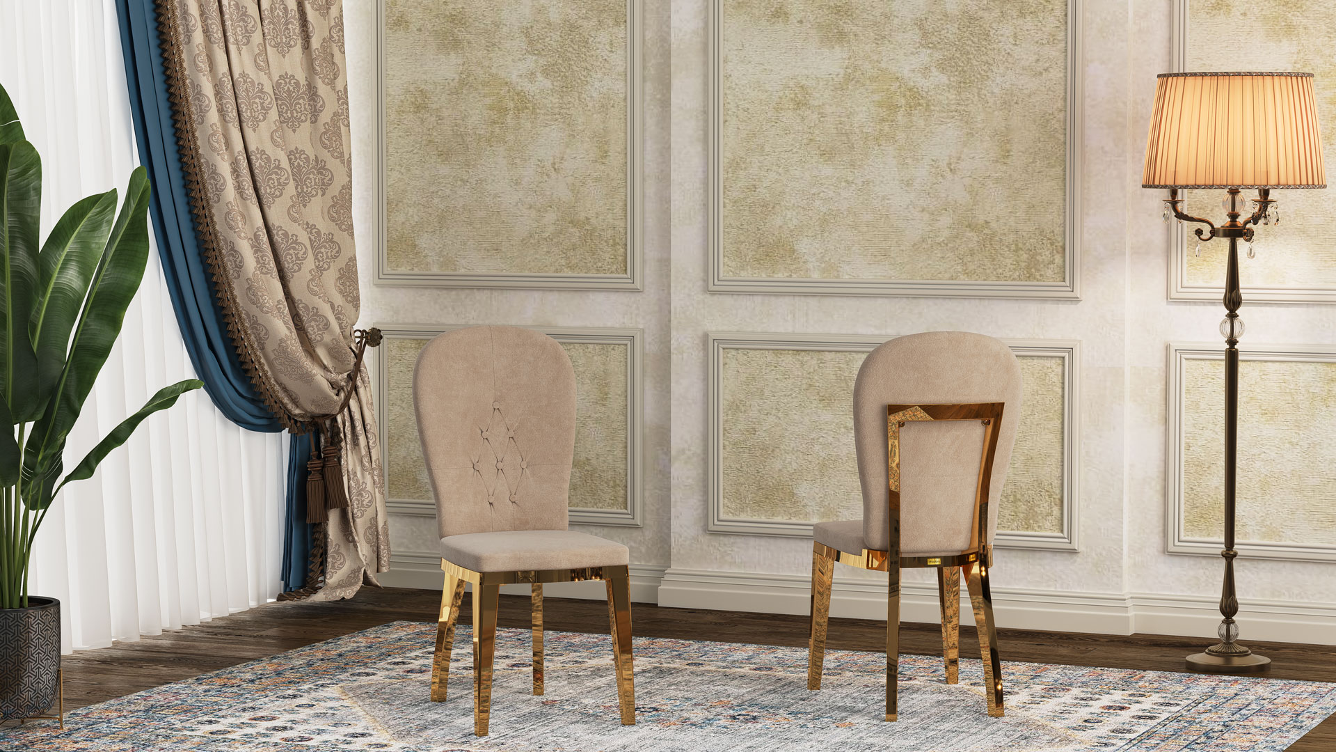 The paints used on this chair are waterproof polyurethane, and thanks to oven-drying, the durability of the coating is significantly enhanced. The chair is available in ten attractive and diverse colors, including gold, pearl, beige, walnut, natural, white, as well as electroplated finishes such as silver, smoke, copper (rose gold), and gold. You can also order the product in your desired color to match your layout and interior design. In chairs with electroplated finishes, the surface is coated with a thin metallic layer that gives them a shiny appearance. In addition to their beauty, this metallic layer protects the chair from abrasion and corrosion, contributing to its longer lifespan.