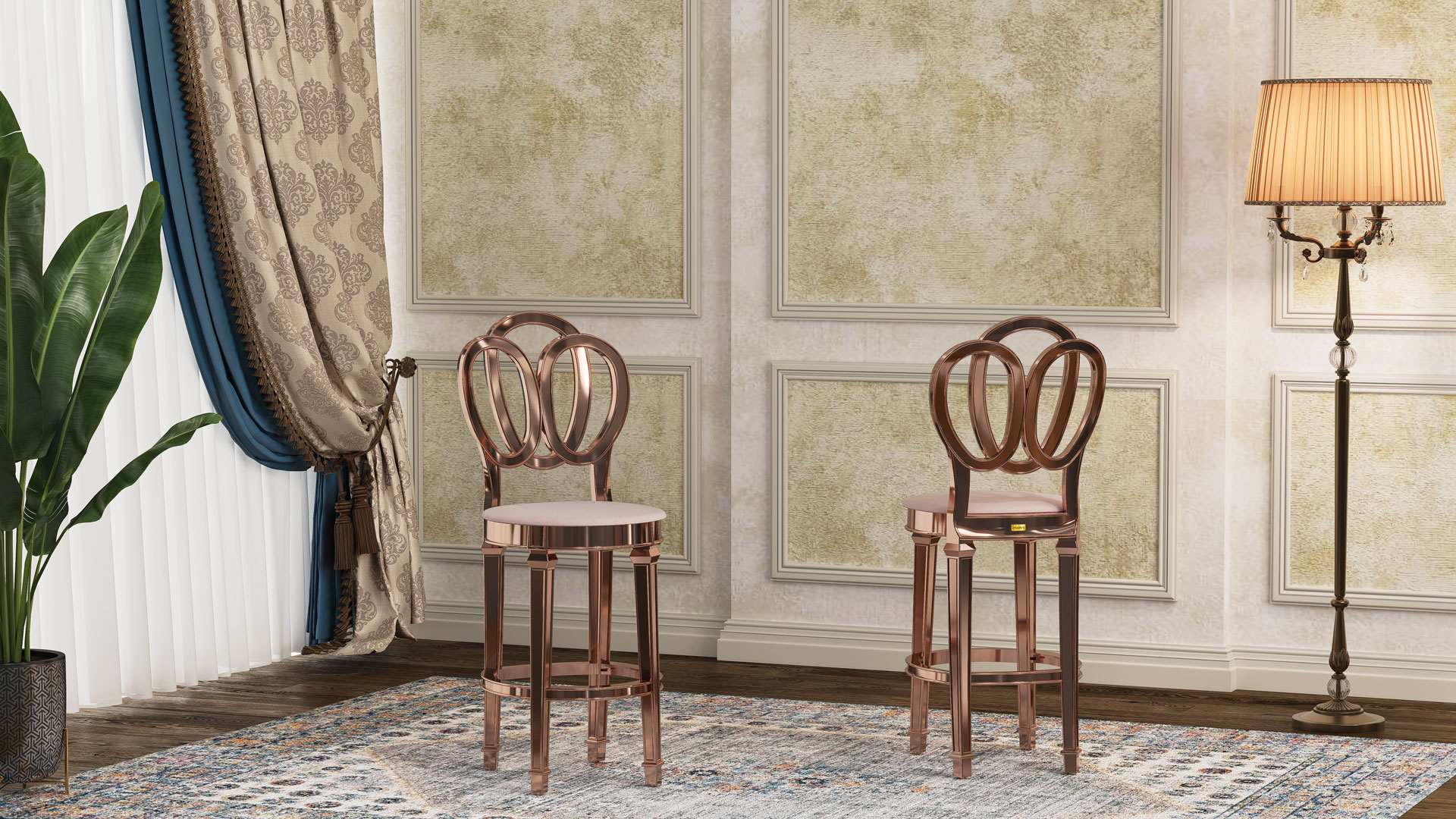 The paints used on this chair are waterproof polyurethane, and thanks to oven-drying, the durability of the coating is significantly enhanced. The chair is available in ten attractive and diverse colors, including gold, pearl, beige, walnut, natural, white, as well as electroplated finishes such as silver, smoke, copper (rose gold), and gold. You can also order the product in your desired color to match your layout and interior design. In chairs with electroplated finishes, the surface is coated with a thin metallic layer that gives them a shiny appearance. In addition to their beauty, this metallic layer protects the chair from abrasion and corrosion, contributing to its longer lifespan.