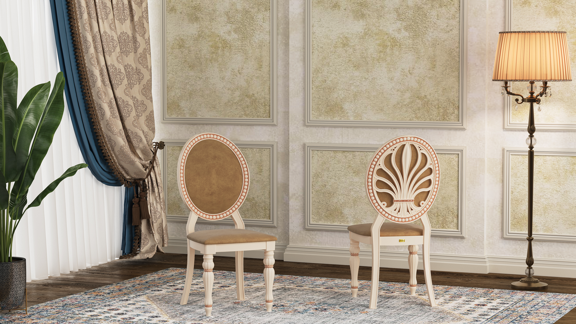 In the Flower Upholstered Polymer Chair, just like the Flower model, nature and art are intertwined to present a magical display of elegance and grandeur. Its oval backrest with embossed petal designs reflects classical artistry that captivates every viewer. Inspired by real flower petals, the design brings both delicacy and a fresh spirit of nature into your space. Intricate carvings on the legs showcase authenticity and artistry, while the graceful curves and detailed craftsmanship make it a perfect choice for classic and luxurious interiors. In reception halls, dining rooms, luxury hotel lobbies, restaurants, or ceremonial venues, the Flower Upholstered Polymer Chair can serve as a focal point, creating a balance of functionality and beauty.