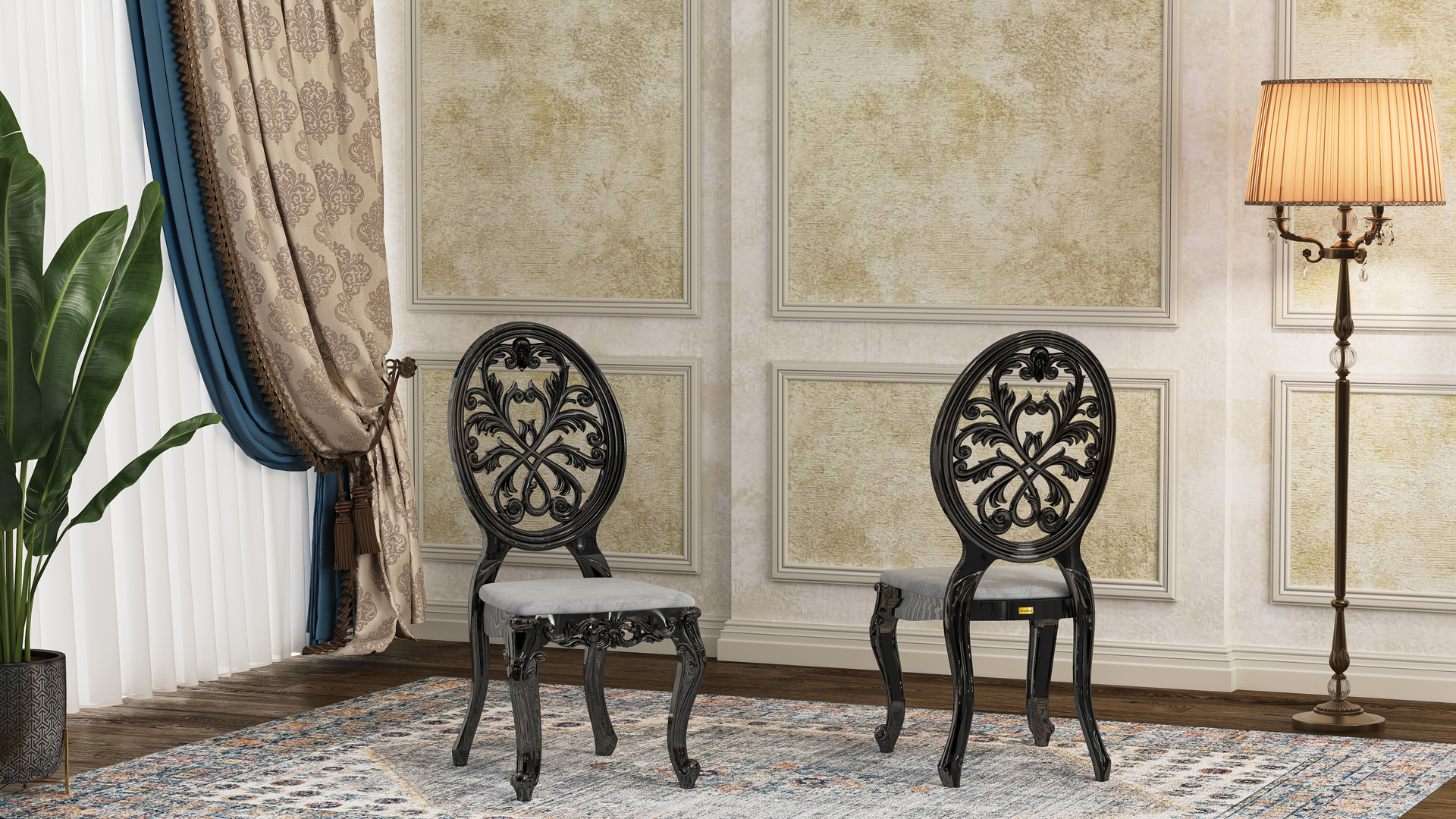 The Roham Polymer Chair, with its distinctive design, is a graceful dialogue between nature and geometry. The delicate carvings on its oval backrest evoke harmony and balance rarely seen in similar products. Slim yet sturdy legs with classic-inspired curves emphasize stability and beauty. This design, combined with comfortable seating, makes the chair suitable not only for short moments but also for extended use. The Roham Polymer Chair is versatile, shining in a variety of settings—from formal dining rooms and reception halls to luxury hotel lobbies, restaurants, ceremonial venues, and even modern offices.