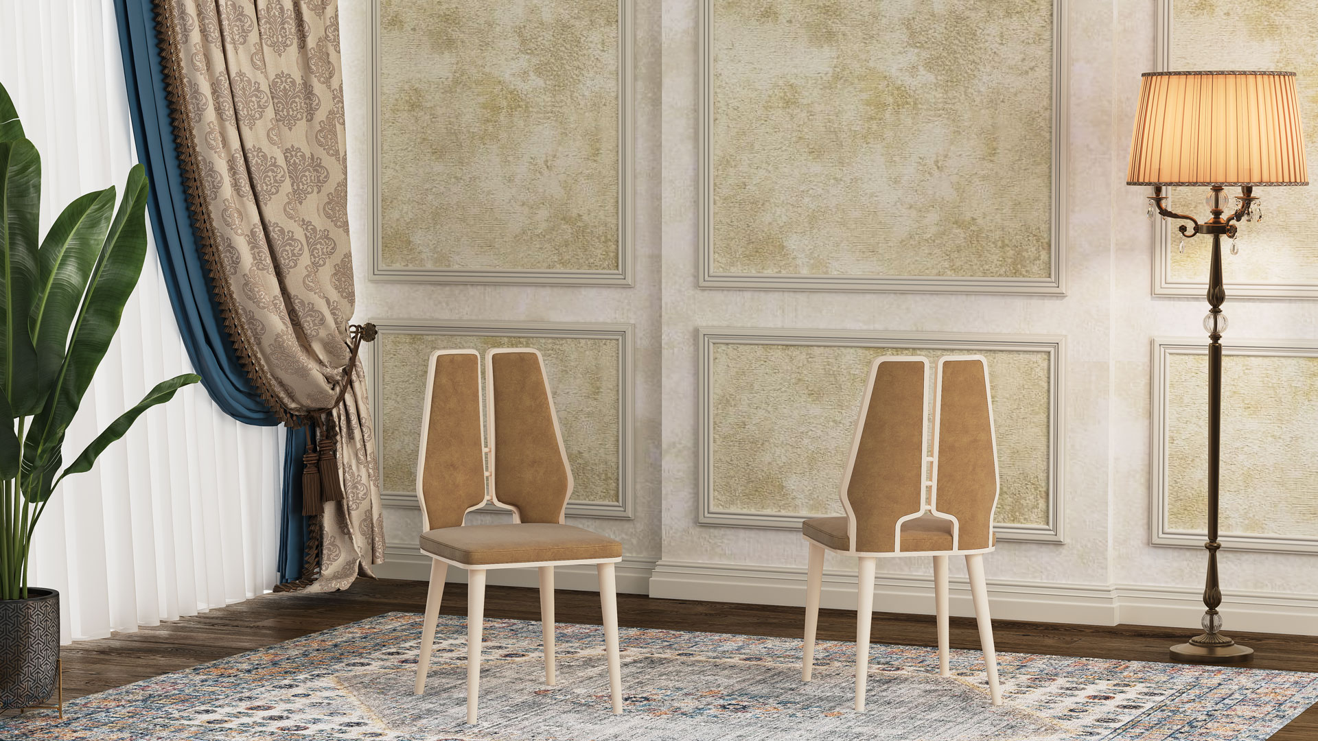 The paints used on this chair are waterproof polyurethane, and thanks to oven-drying, the durability of the coating is significantly enhanced. The chair is available in ten attractive and diverse colors, including gold, pearl, beige, walnut, natural, white, as well as electroplated finishes such as silver, smoke, copper (rose gold), and gold. You can also order the product in your desired color to match your layout and interior design. In chairs with electroplated finishes, the surface is coated with a thin metallic layer that gives them a shiny appearance. In addition to their beauty, this metallic layer protects the chair from abrasion and corrosion, contributing to its longer lifespan.