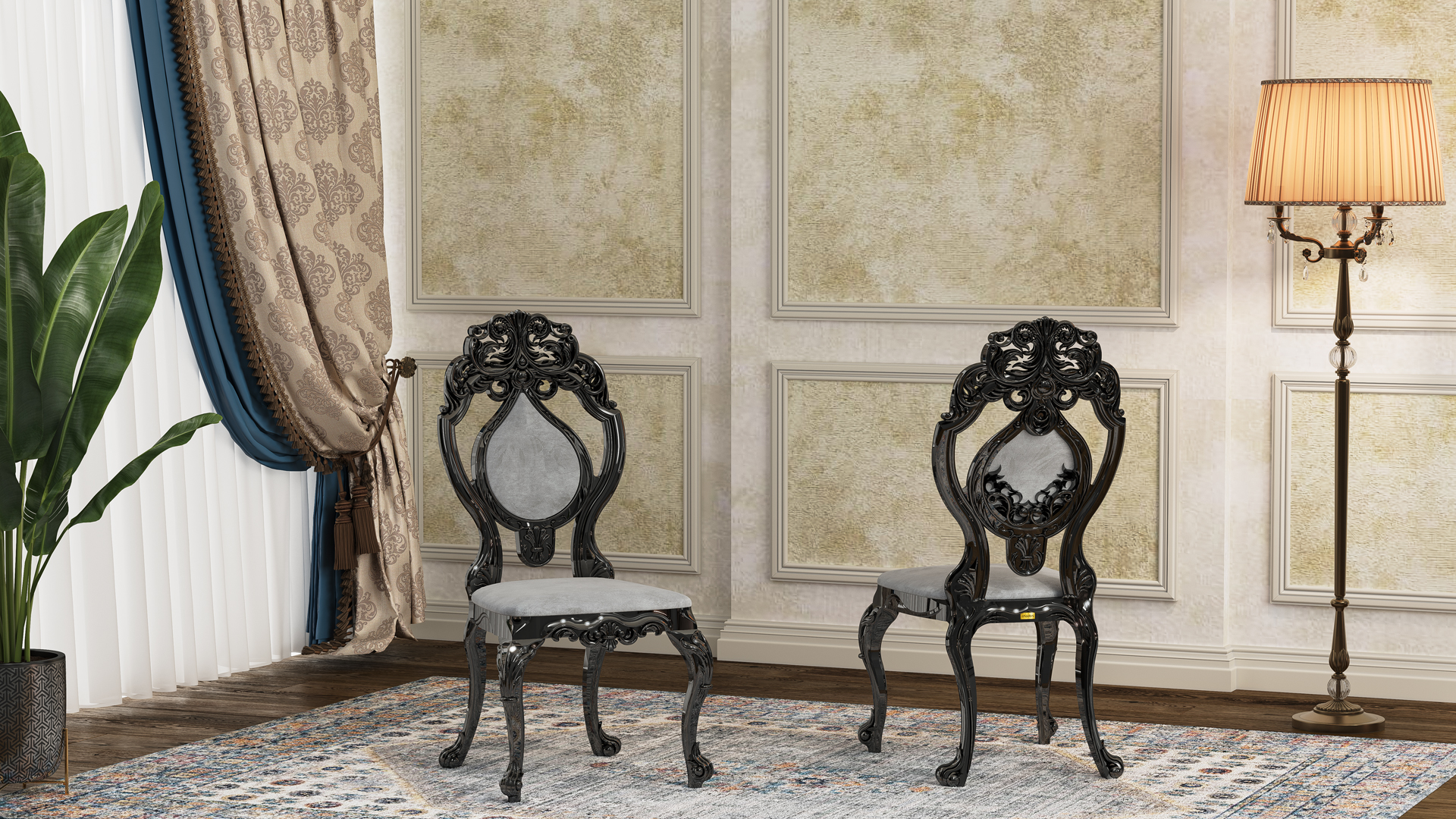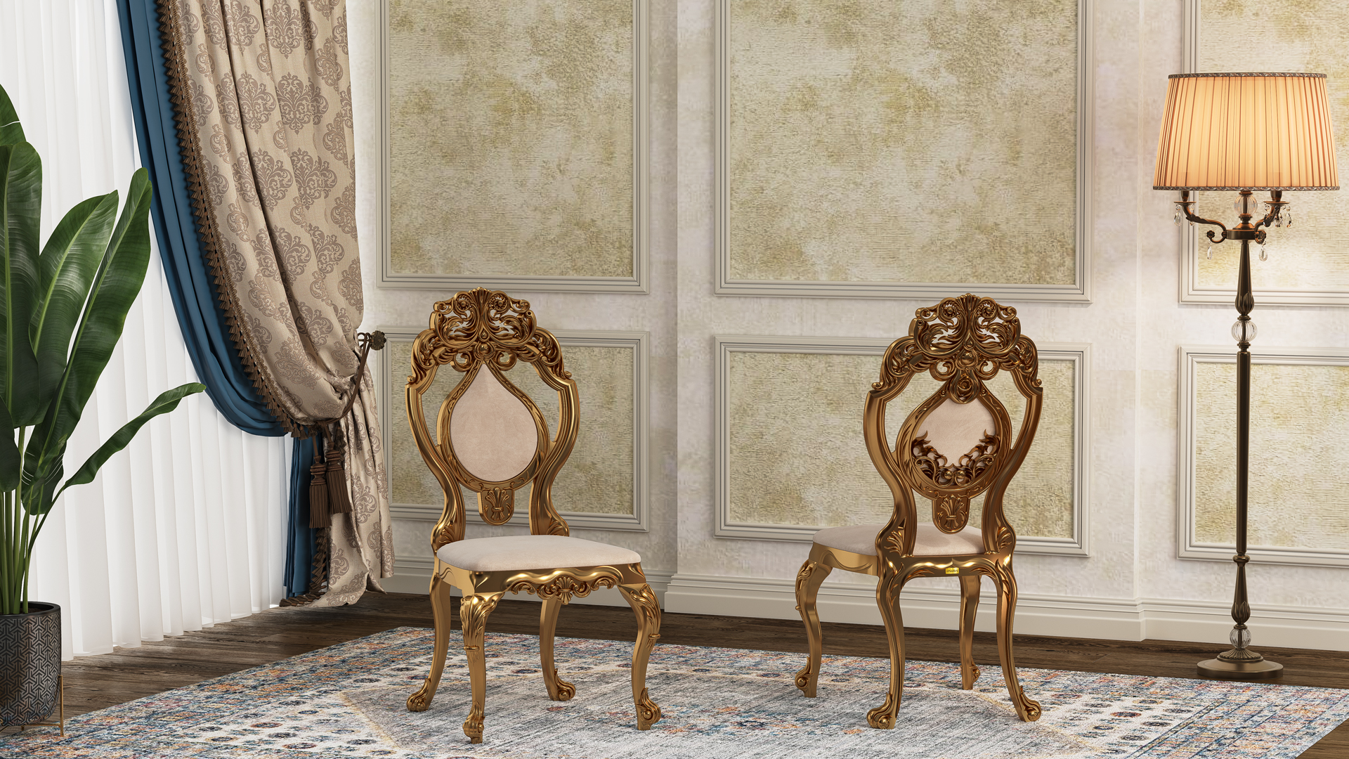 گویی هر خط و انحنای صندلی تالاری دیاموند داستانی از دوران باشکوه گذشته را در خود نهفته دارد. این صندلی با جزئیات حکاکیهای دقیق و طراحی منحصربهفردش، اصالت هنرهای ظریف سبکهای باروک و روکوکو را به نمایش میگذارد. پشتی و پایهها با انحنا و تزئینات برجسته خود، فضای داخلی را به اثری هنری و بیهمتا تبدیل کرده و جلوهای از شکوه را به دکوراسیون اضافه میکنند.