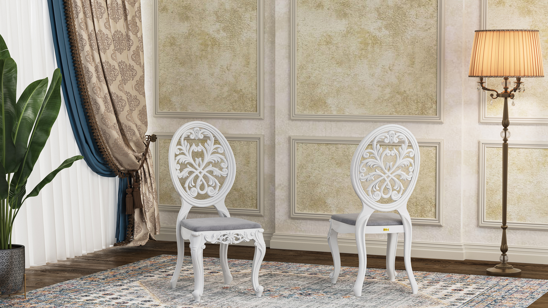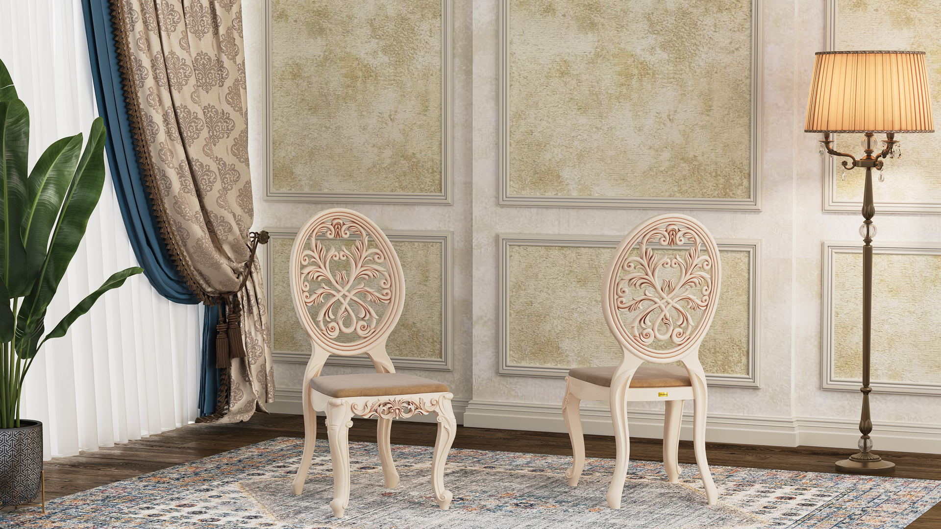 صندلی تالاری رهام با طراحی خاص خود، یادآور تعامل هنرمندانۀ طبیعت و هندسه است. نقوش ظریف حکشده بر پشتی بیضی آن، حس هماهنگی و تعادلی را القا میکند که کمتر در محصولات مشابه دیده میشود.